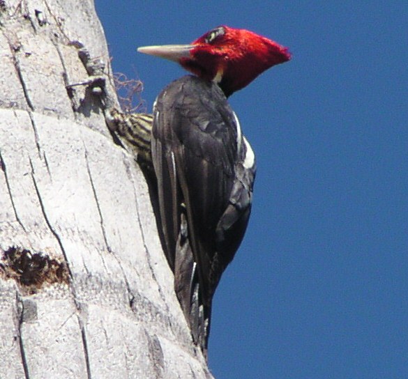 | The Pale-billed Woodpecker is a large woodpecker that resides in locations from northern Mexico to western Panama. This photograph was taken in Huatulco, Oaxaca. They chip out holes in trees, often quite large, while looking for insects. |