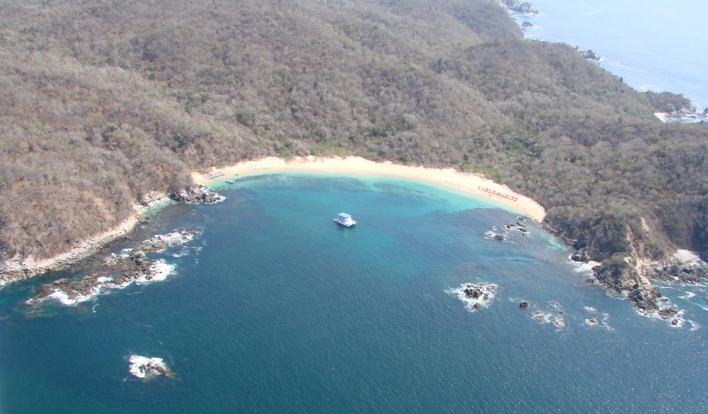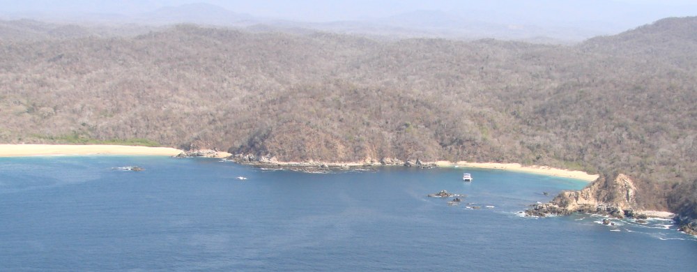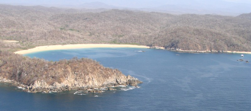 It was fun to return to this beach, if only from the air 26 years later. Although there was a tourist boat anchored there, it seems relatively unchanged. Since I maintain a web site on Huatulco, it could be assumed that I favor development and am promoting this area. Actually, my feeling about the development is that it is inevitable and I will report on it but it is not something that makes me happy. I enjoyed my 1982 visit to Huatulco as much as my last. I do consider the addition of an airport to be an improvement.