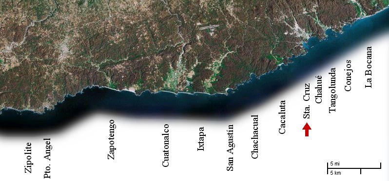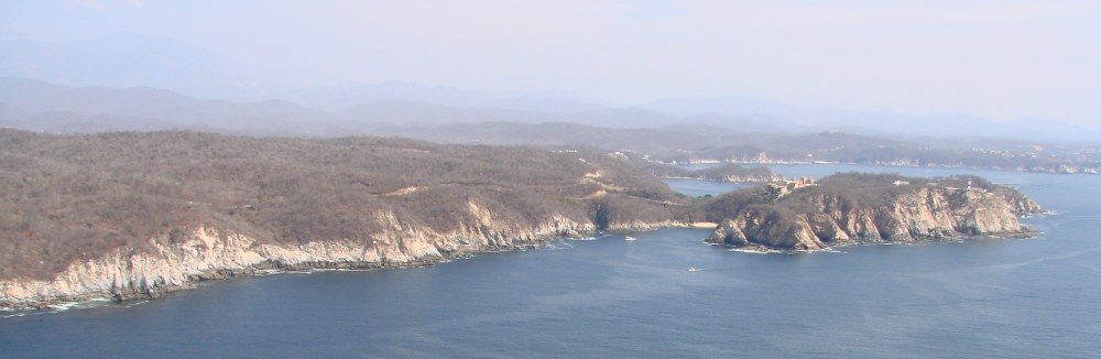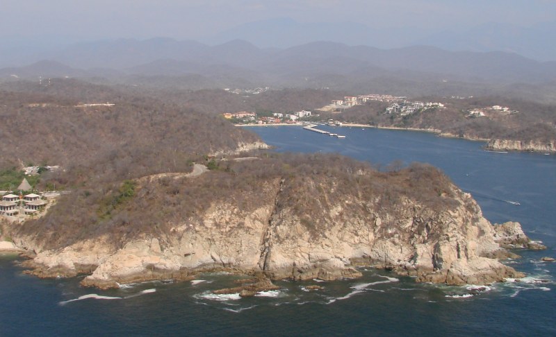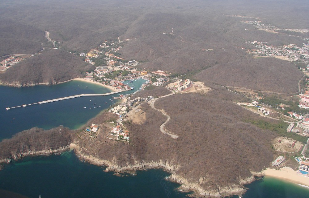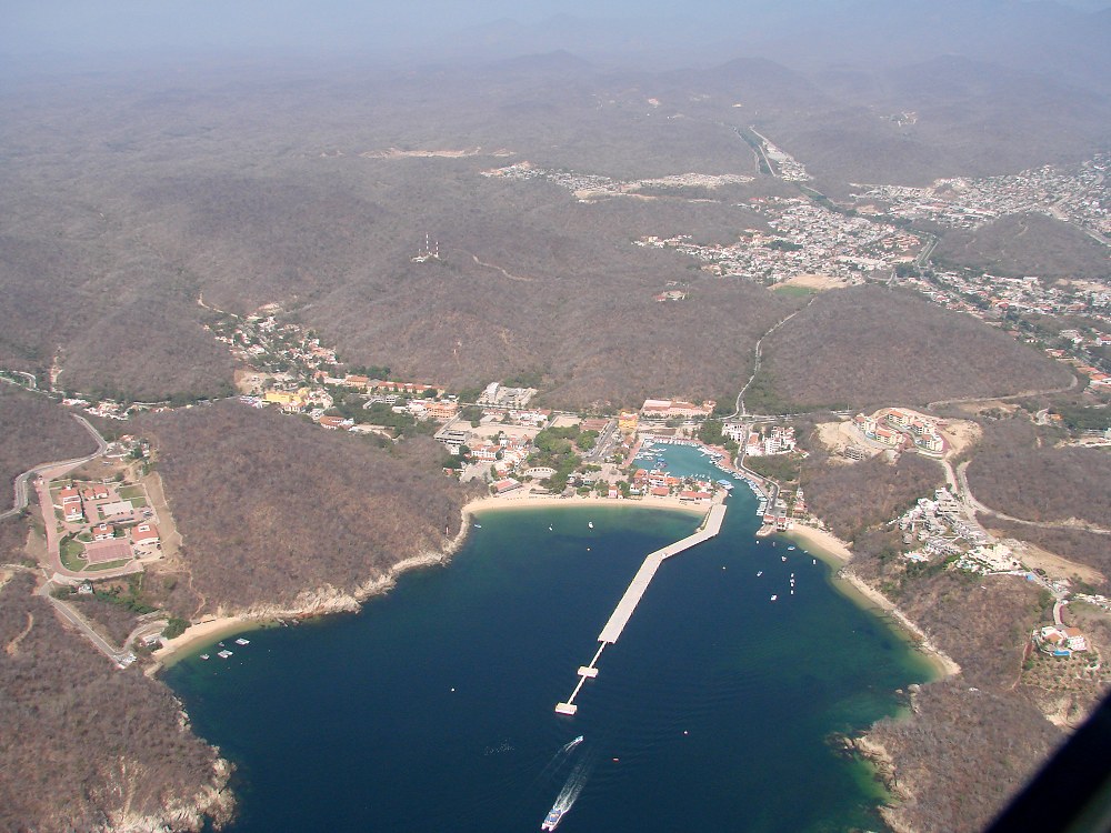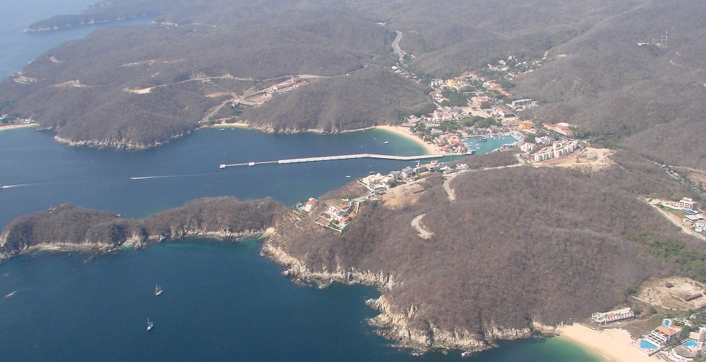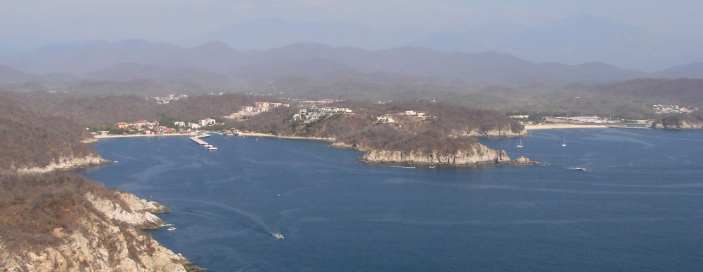 Playa Violin is located near the center of the photo. Santa Cruz Huatulco is off in the distance.