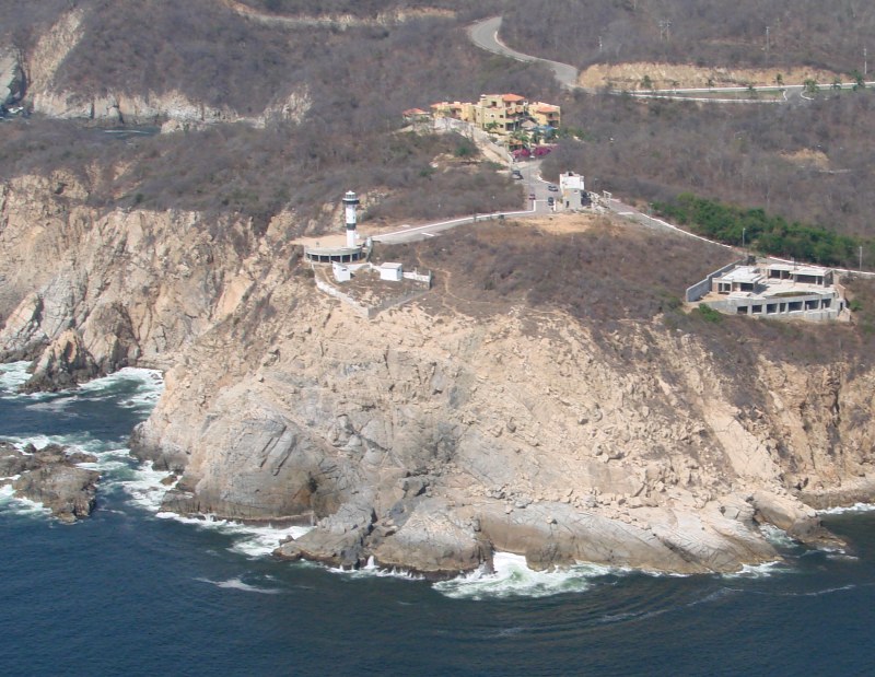 lighthouse at left, cruise ship dock in background, Chahué at right
