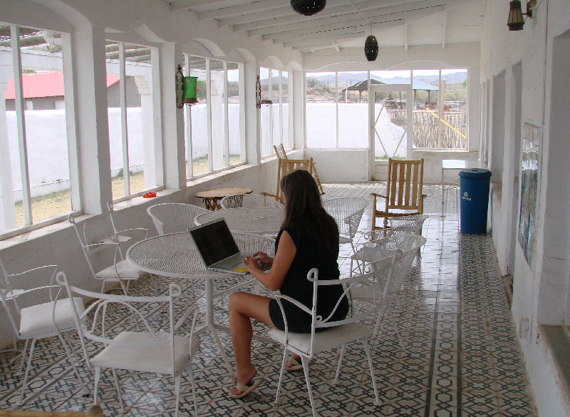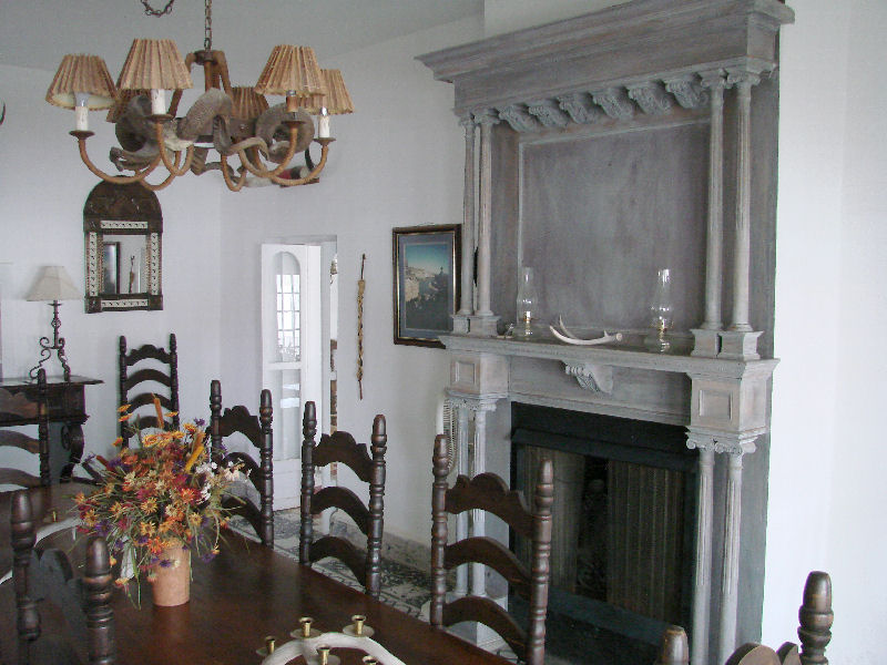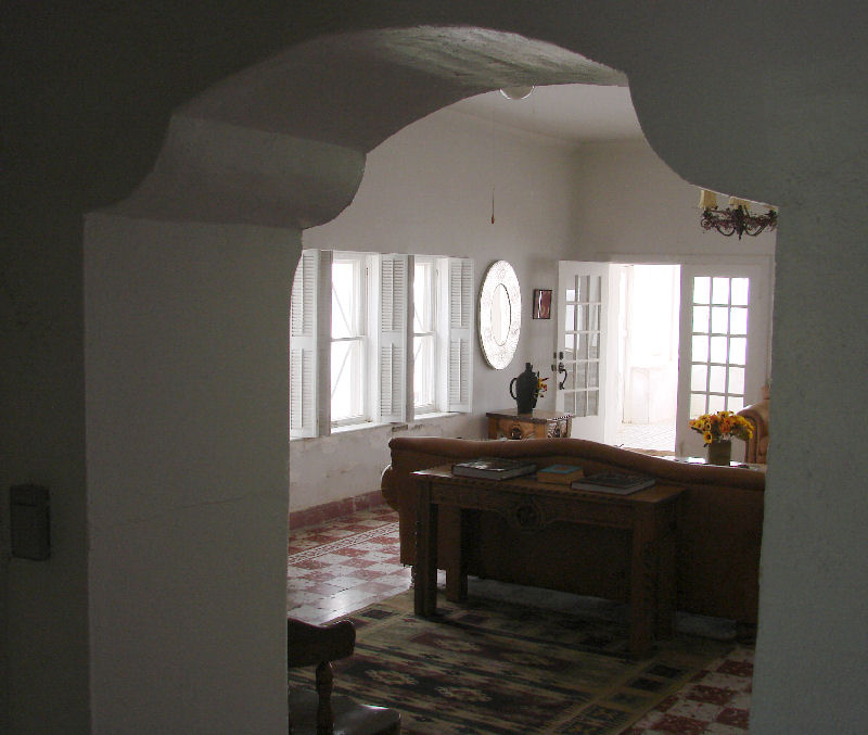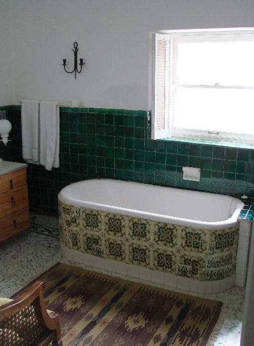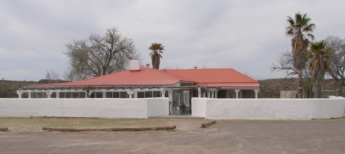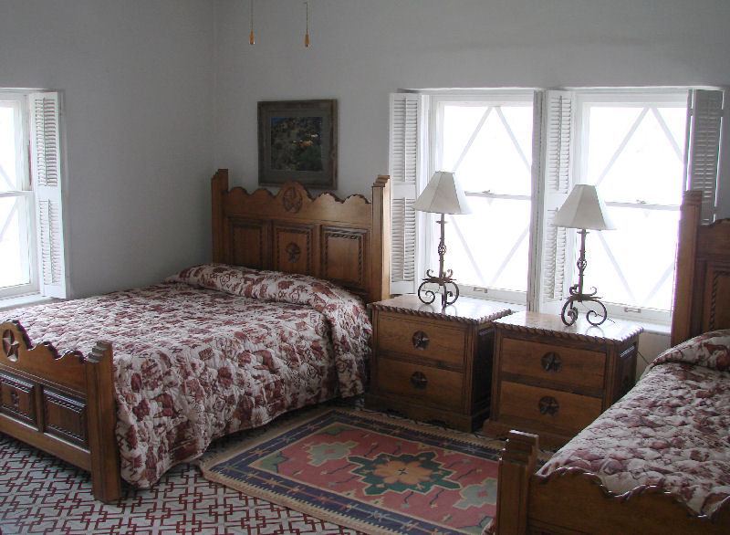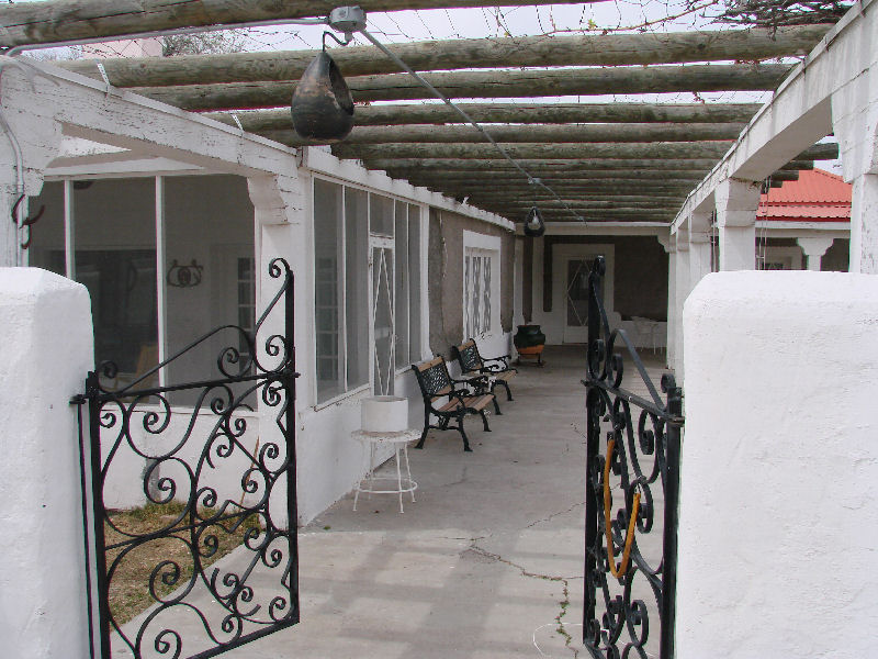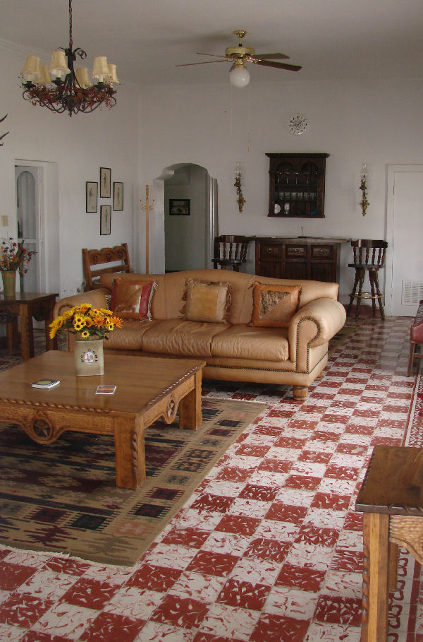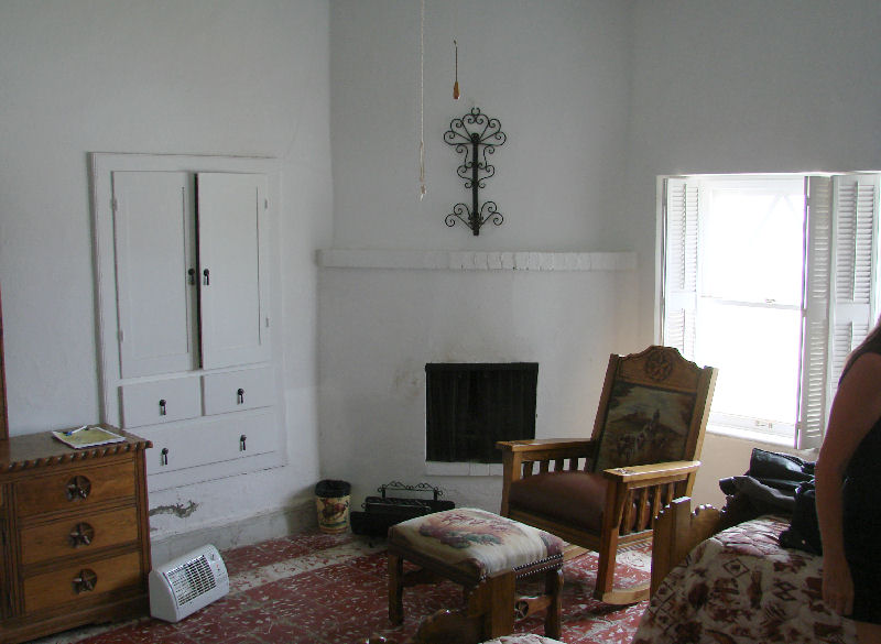 | The Big House was built in the early 1900s as the ranch house for this privately-owned ranch. It is adobe construction with large rooms and high ceilings. Every room except for the kitchen and bathrooms has a fireplace. The original structure consisted of the 3 rooms and porch in front. The three bedrooms in back were added later. The house does show its age, somewhat more than is seen in the photos. The floor tiles are crumbling around the edges and the floor is uneven in places. The paint on the adobe is peeling due to moisture intrusion. Nevertheless it is a charming and comfortable home. One cannot help but ponder the history it has seen. |
