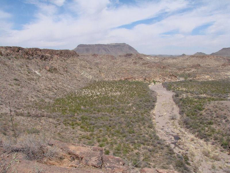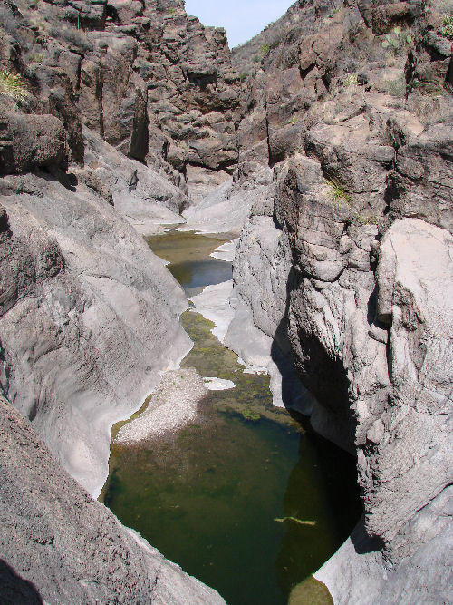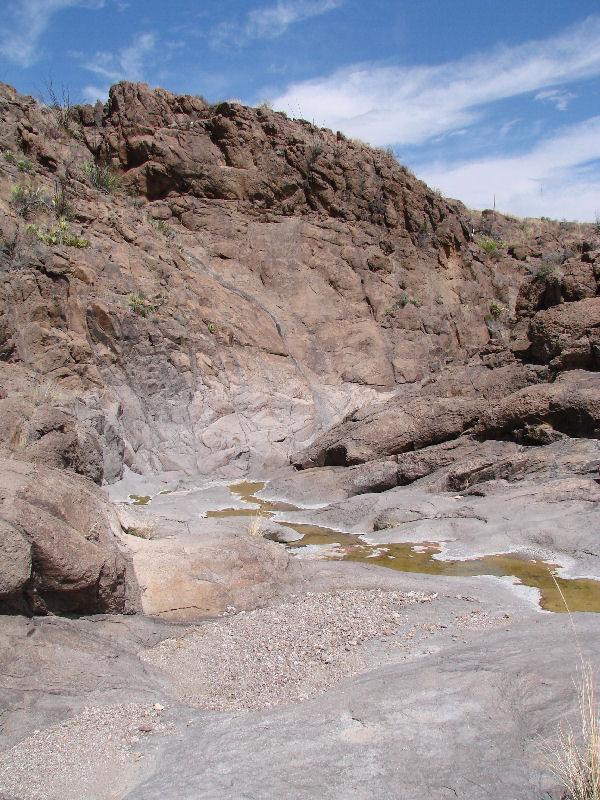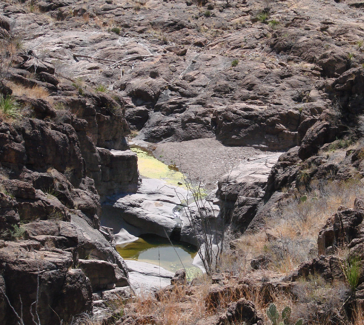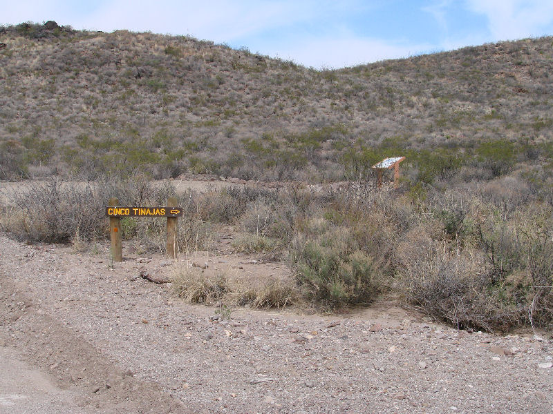 The Cinco Tenajas trail is located 1.3 miles west of Sauceda. The trail leads to an overlook above the canyon where the tenajas are located and then down to the tenajas themselves. A tenaja is a standing pool of water in a shady, sheltered area. |