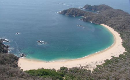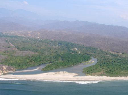 We proceed on to Punta Cometa. Actually I overshot Punta Cometa and flew to the next point of land which turned out to be Santa Elena, 22 miles further to the west. Although the winds were calm, the beaches here seemed to have some nice surf. We reversed course and flew back toward Huatulco. I was able to communicate with Huatulco Tower when within 10NM of the airport. The morning flight was quite smooth and I snapped about 250 photos out the pilot's window. When we reached Río Copalita we again reversed course for the return to the airport. I called Huatulco Tower and was told to land on runway 25 and report when on final.