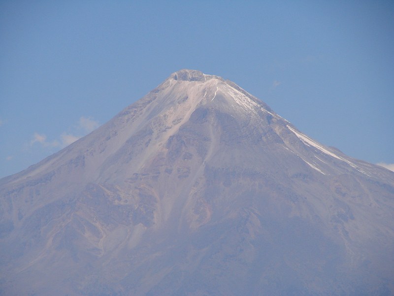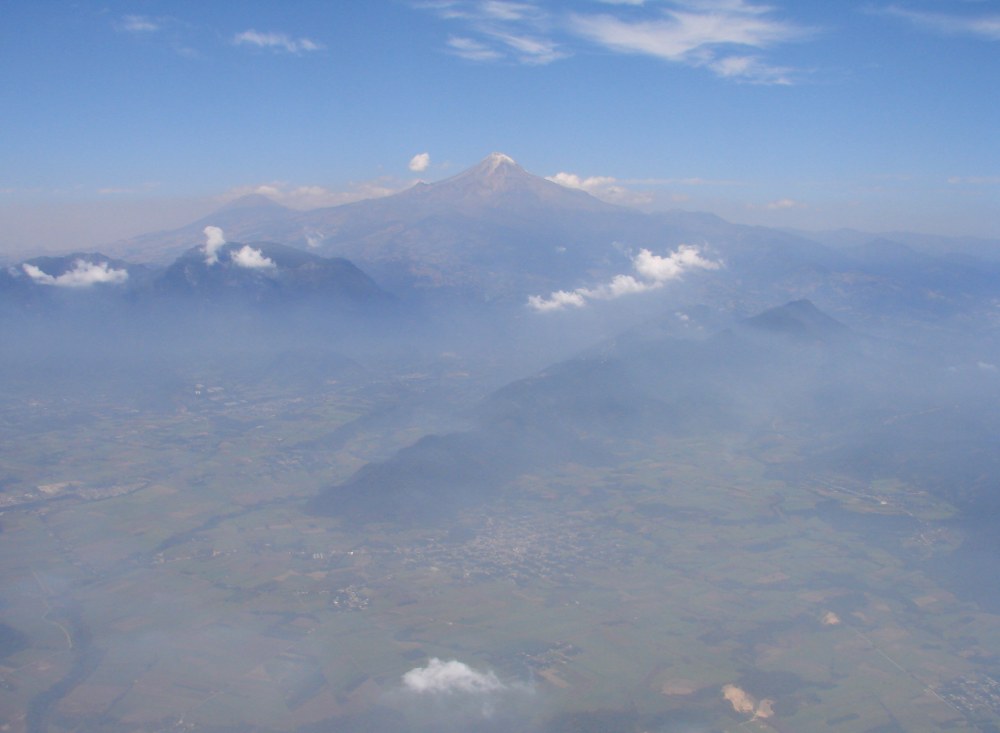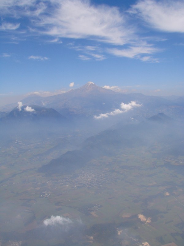 ![]() Pico de Orizaba at 18,400', 200 NM into the flight, is the halfway point between Huatulco and Tampico. It is the tallest mountain in Mexico and the 3rd tallest in North America. Even though it is in a tropical location, its peak is normally capped in snow. It's size dwarfs the other mountains and it is plainly visible even from jetliners. The city of Orizaba is in the foreground. The photo was taken from 30 miles away from the volcano. Orizaba is dormant but not extinct. There have been 7 eruptions in recorded history, the last in 1687. |