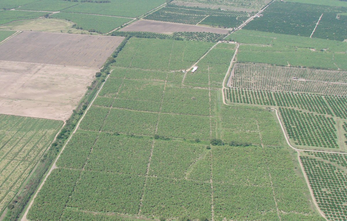 Irrigated cropland. Nevado de Colima (snow-capped) can be seen in the background.