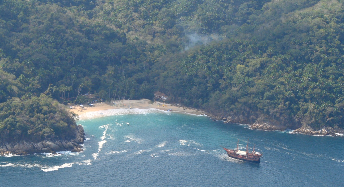 Majahuitas, accessible only by boat as with this "Pirate" tour boat