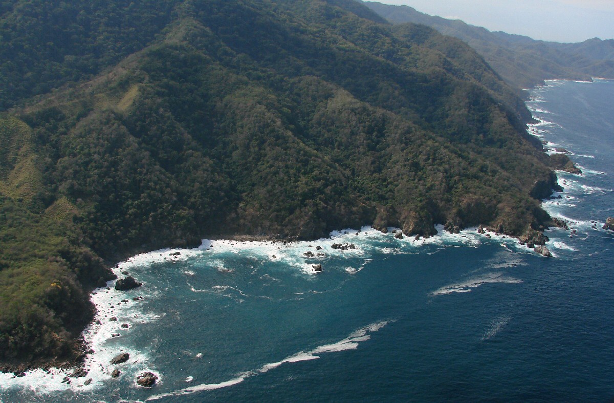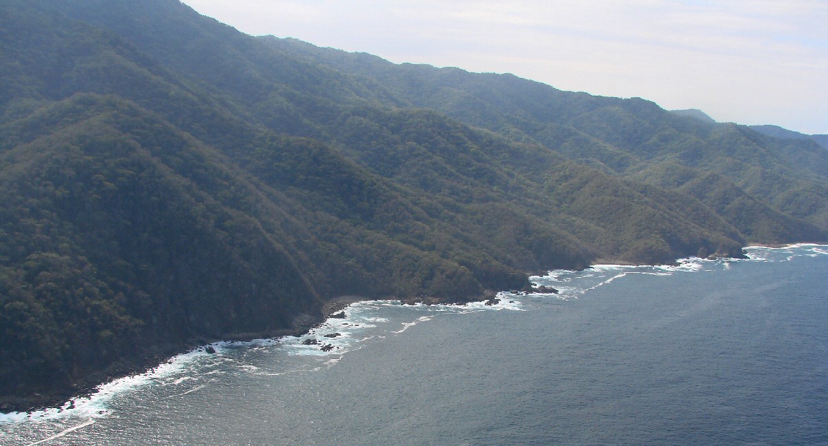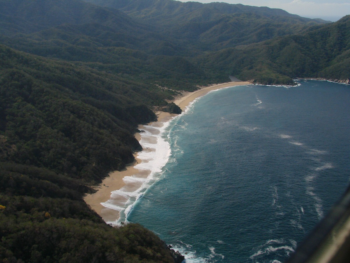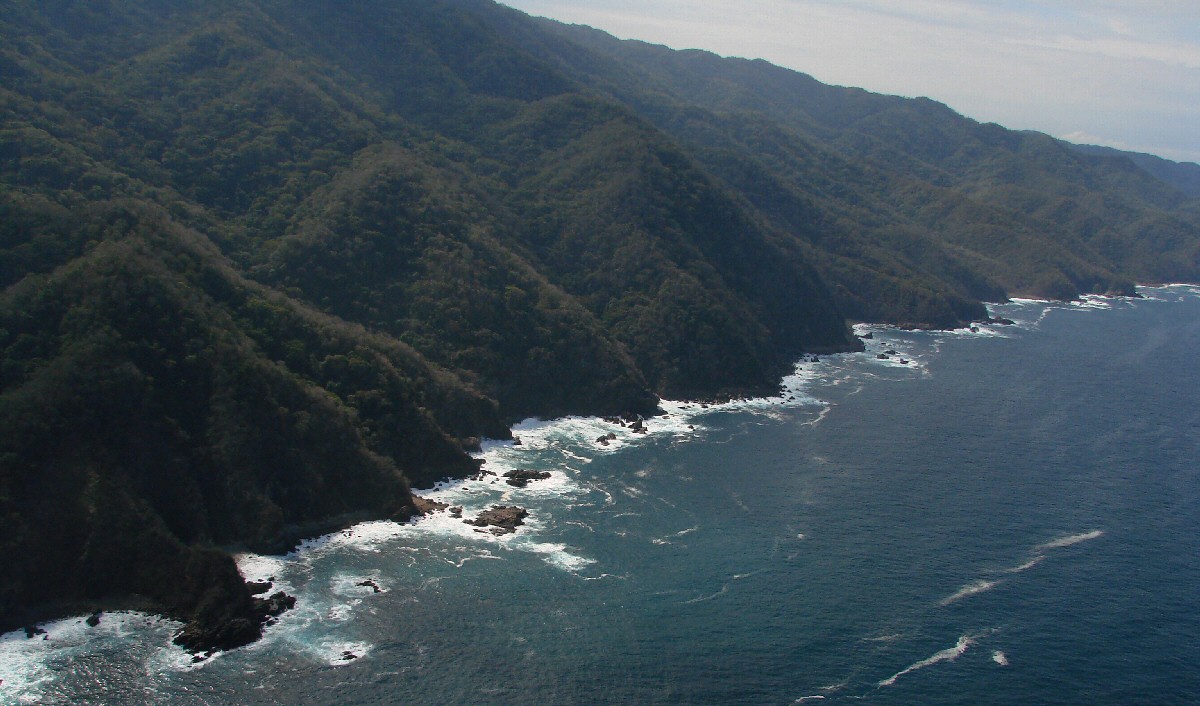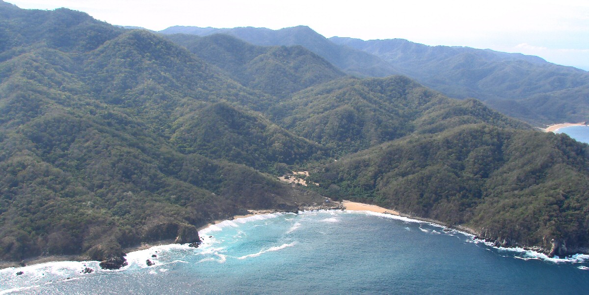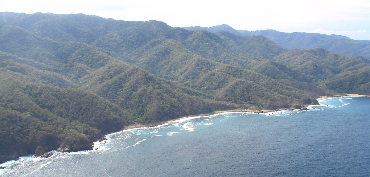 Banderas Bay coastline with Punta la Iglesia in foreground, and in background Punta Tabita, first major point jutting out at upper right