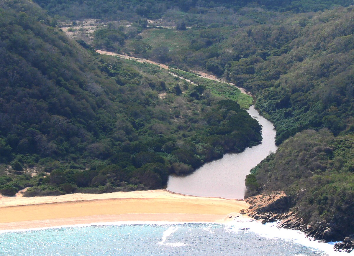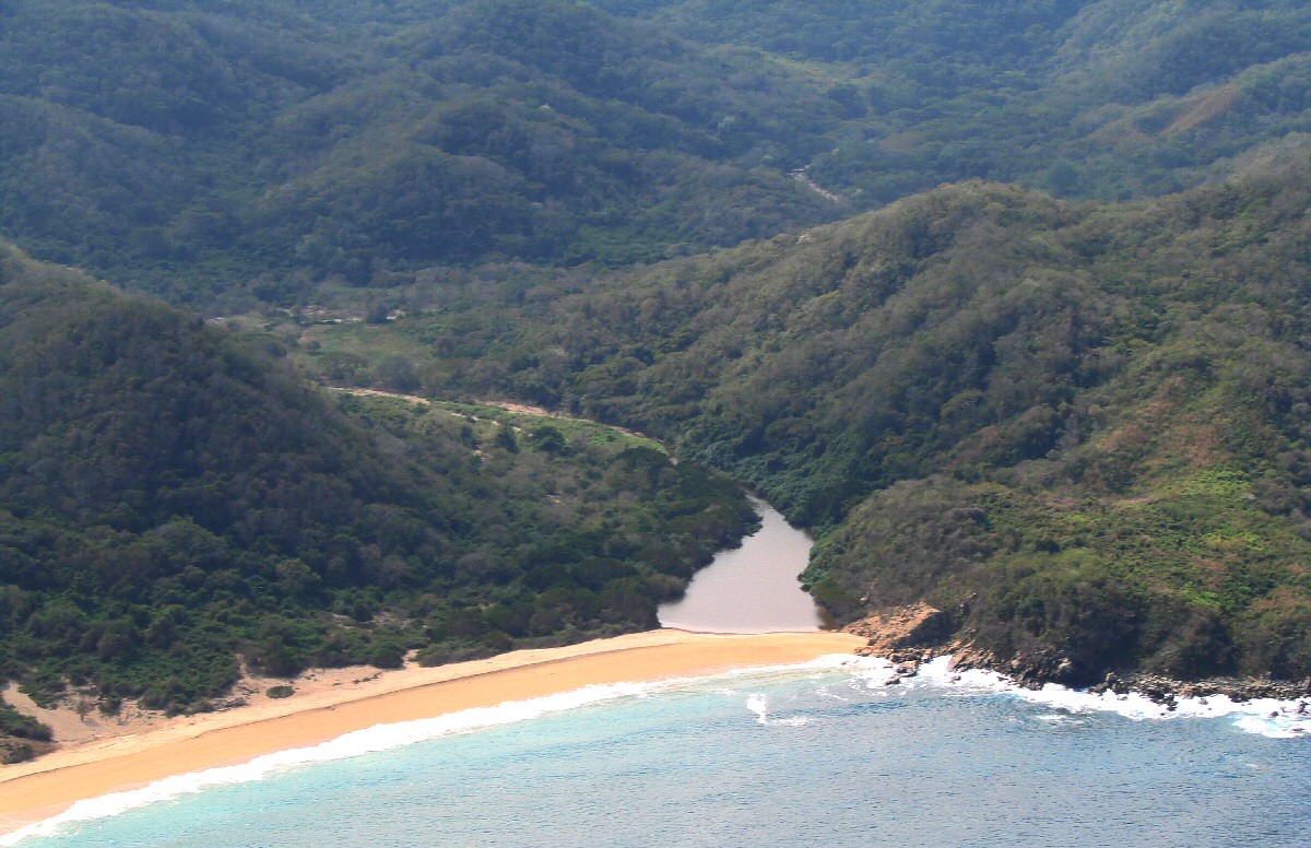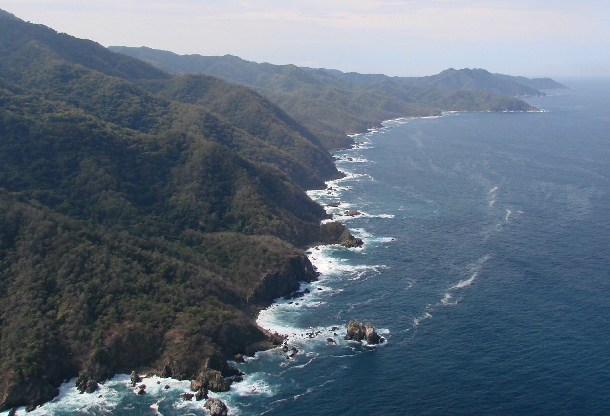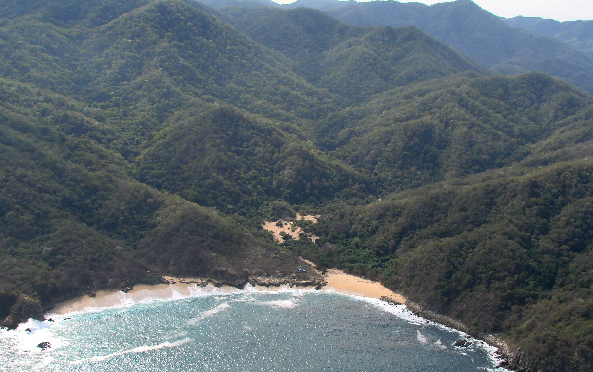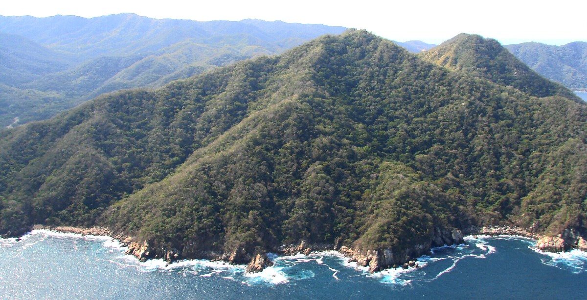 Banderas Bay coastline with Punta la Iglesia in foreground, and in background Punta Tabita, first major point jutting out at upper right