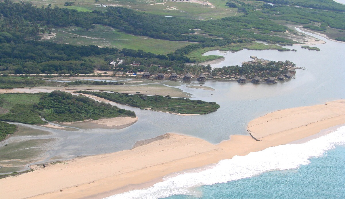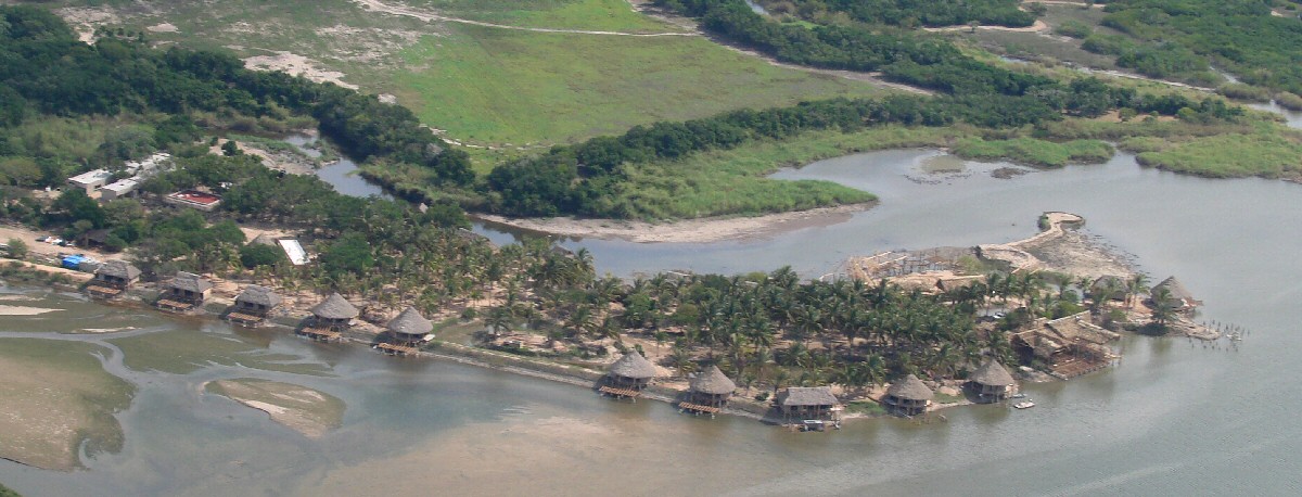 Estero el Ermitaño with Río María Garcia in background. Hotelito Desconocido at right of center.