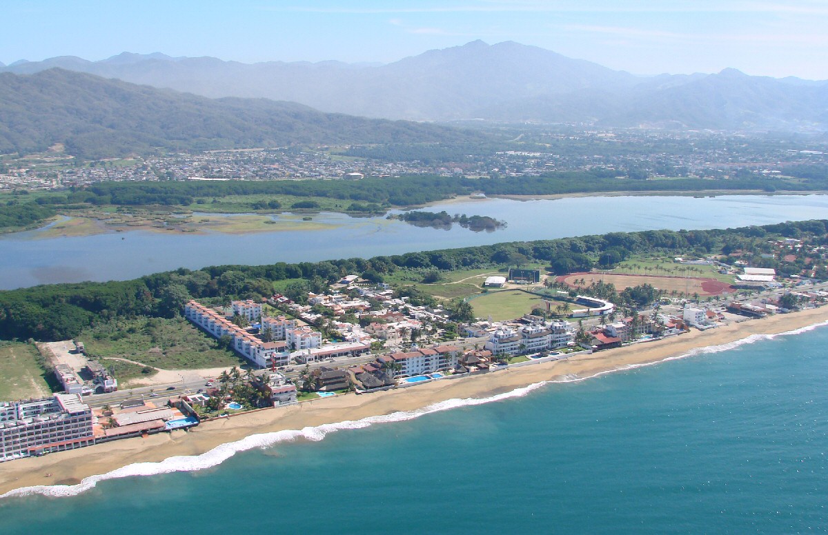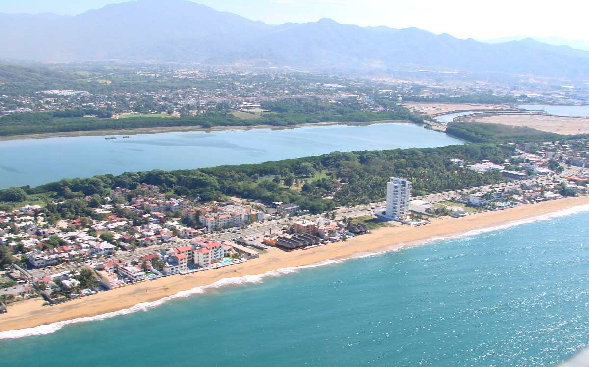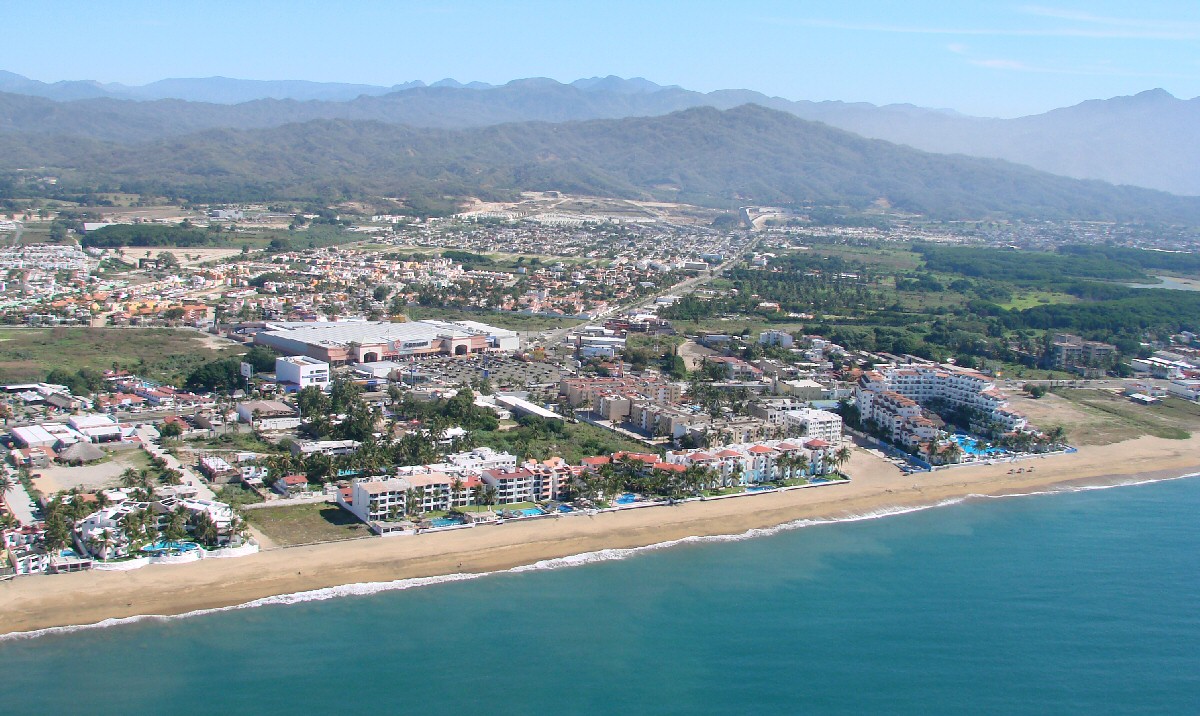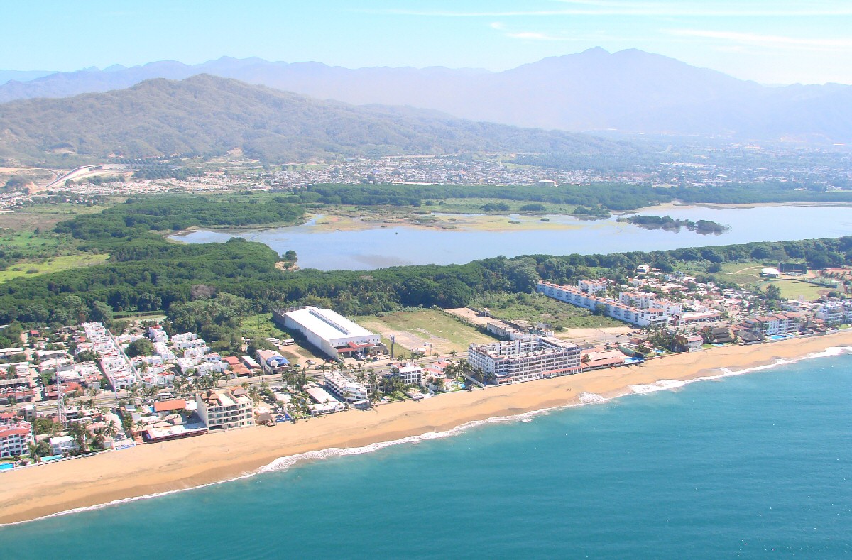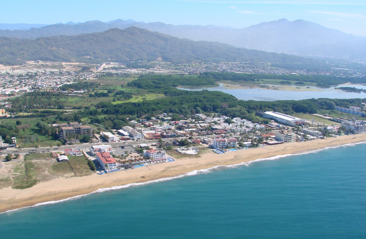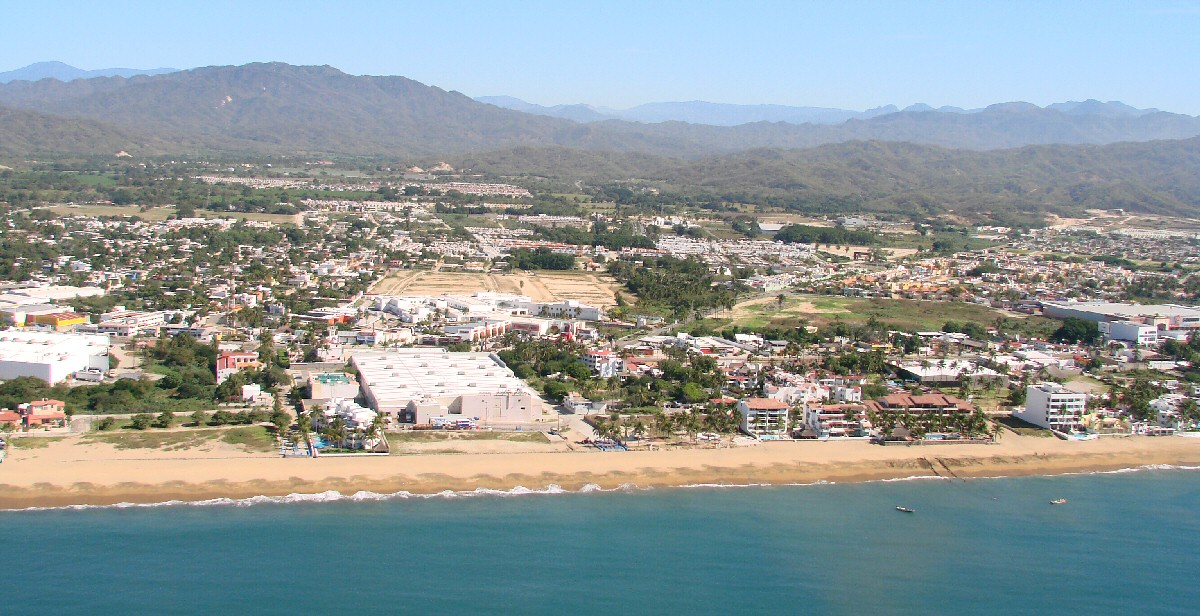 Playa Azul with Hotel Fiesta Mexicana (large building to right of center)