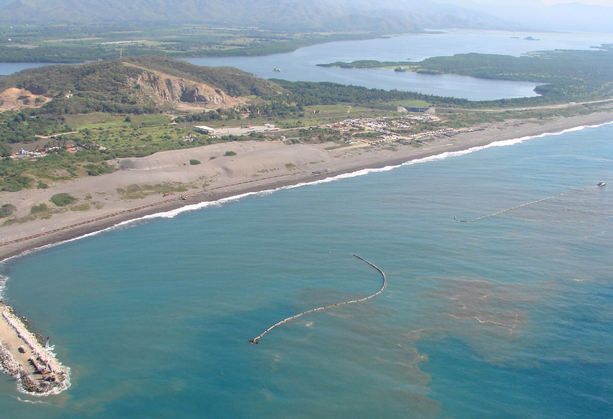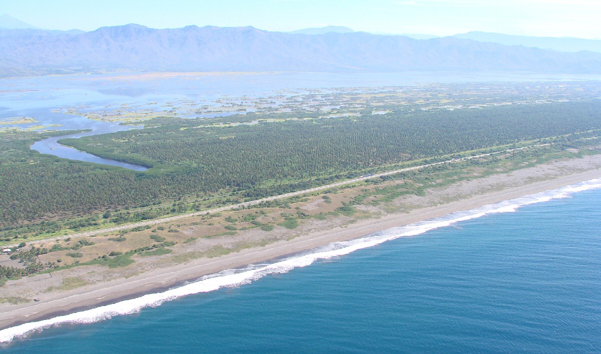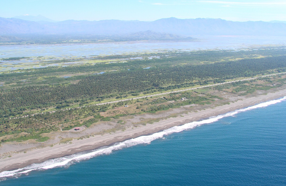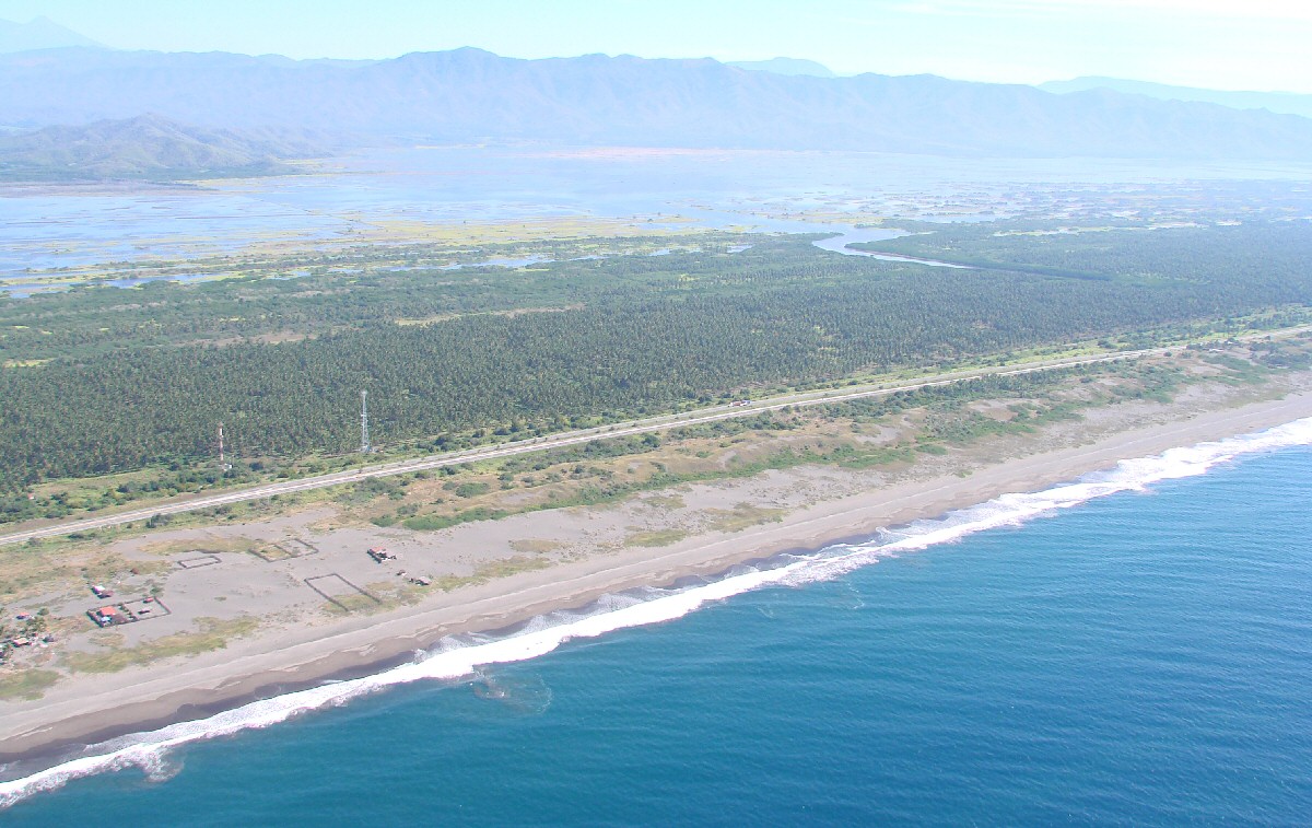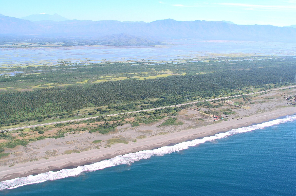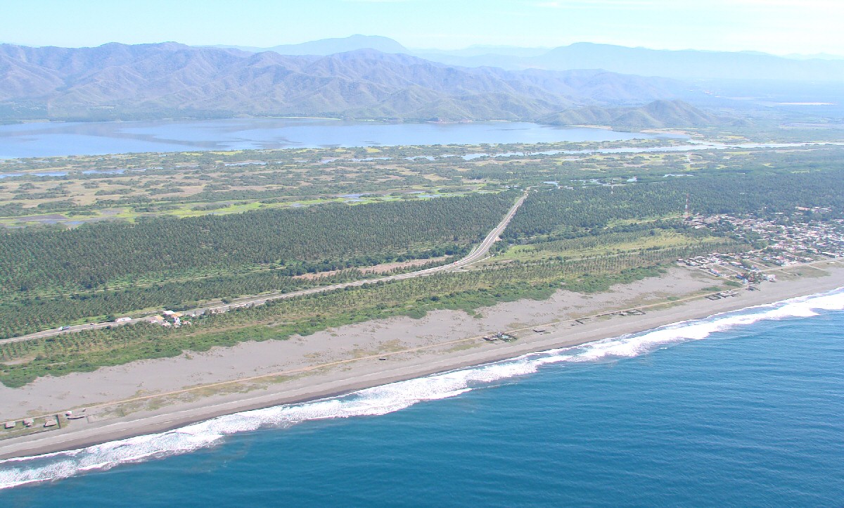 Laguna Cuyutlán in background. Hwy 200 and the railroad and Playa Cuyutlán run straight and parallel for some 10 miles to Cuyutlán