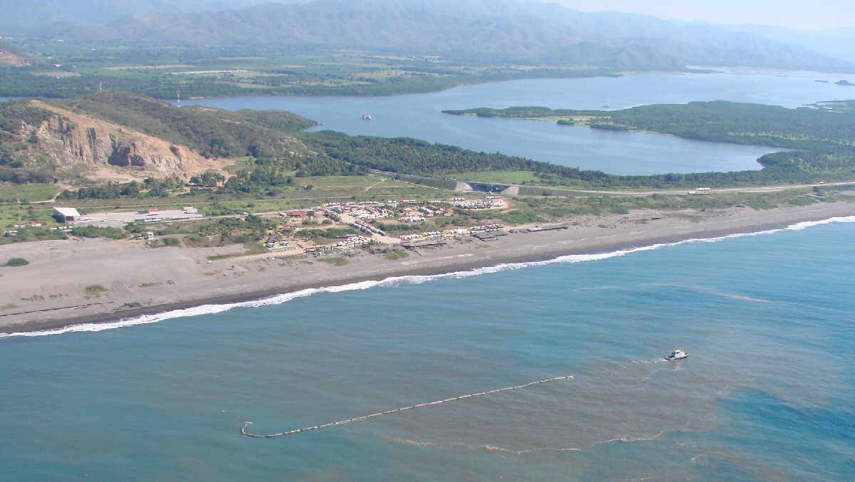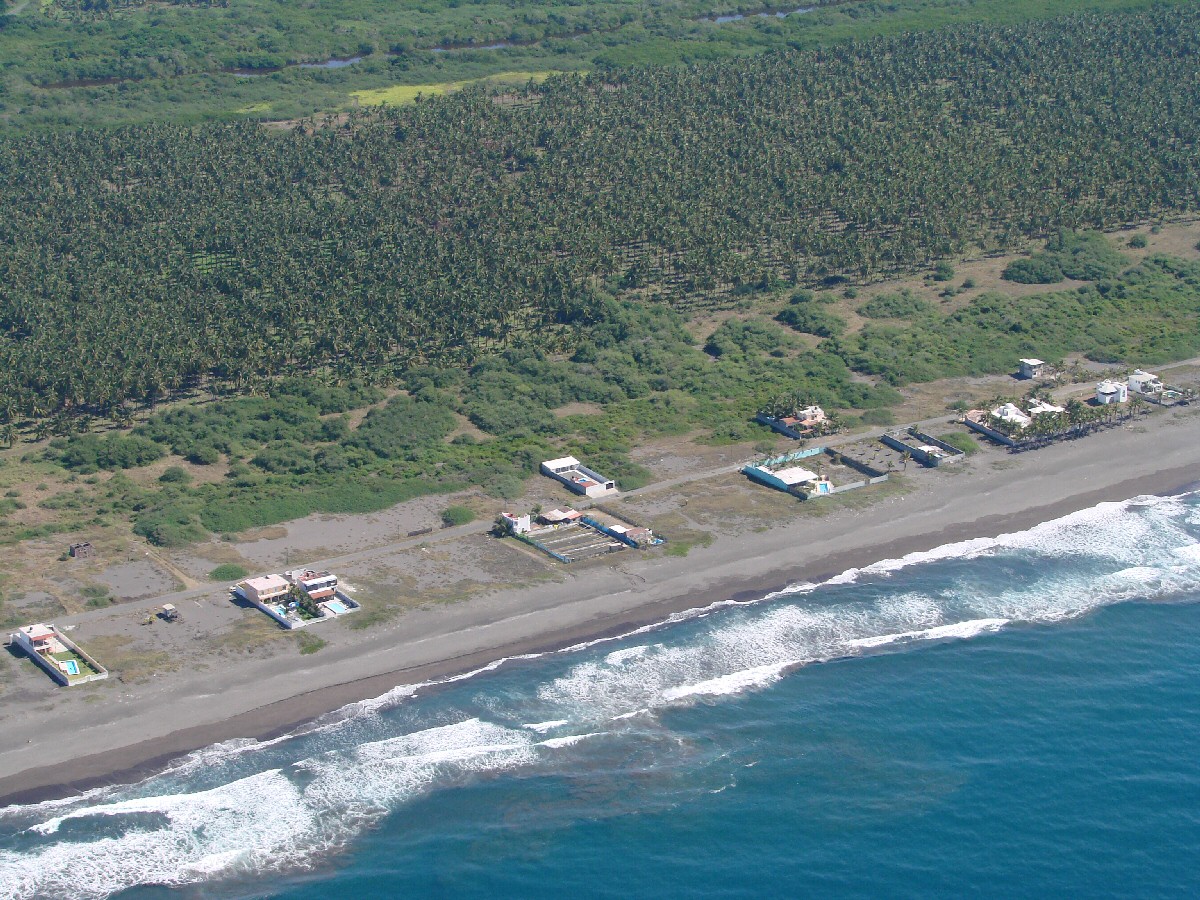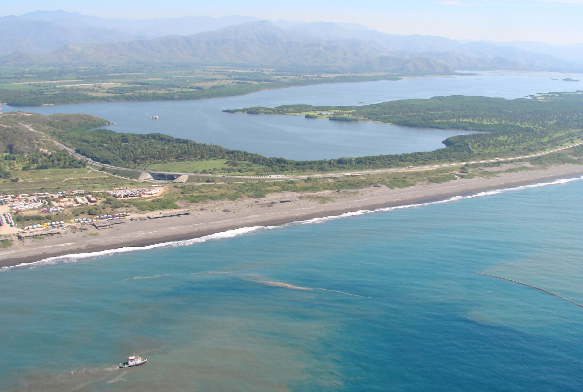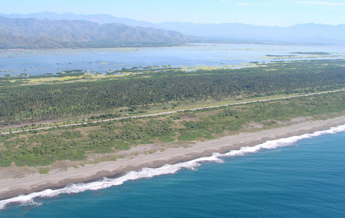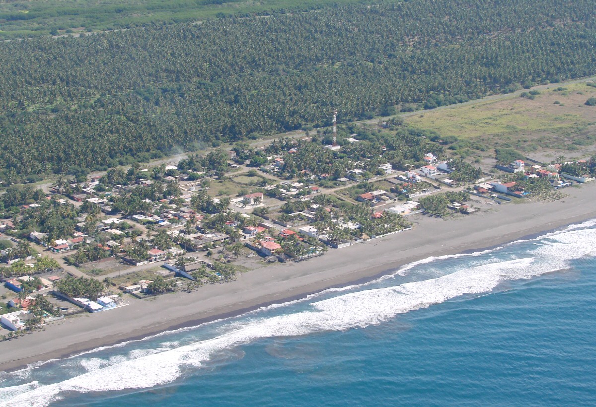 The town of Cuyutlán comes into view. Laguna Cuyutlán in background.