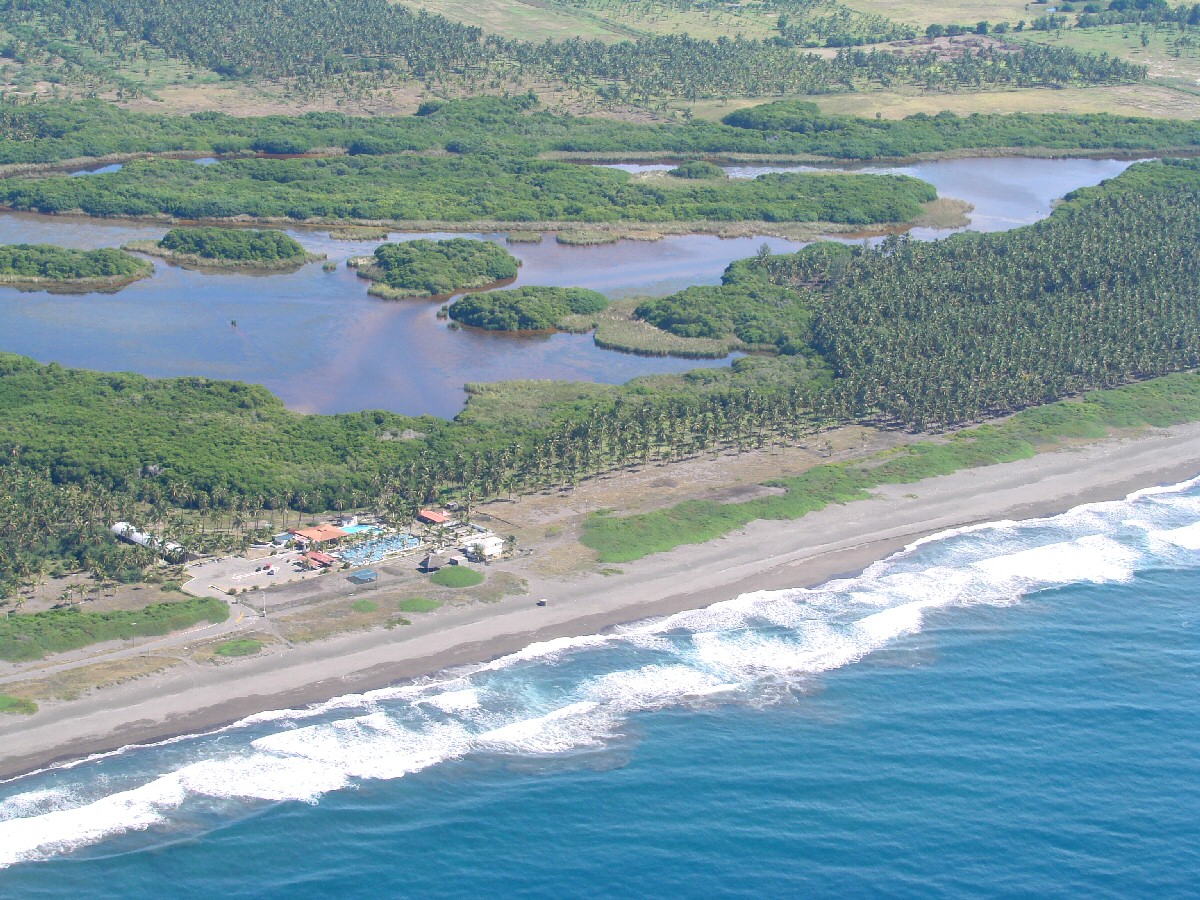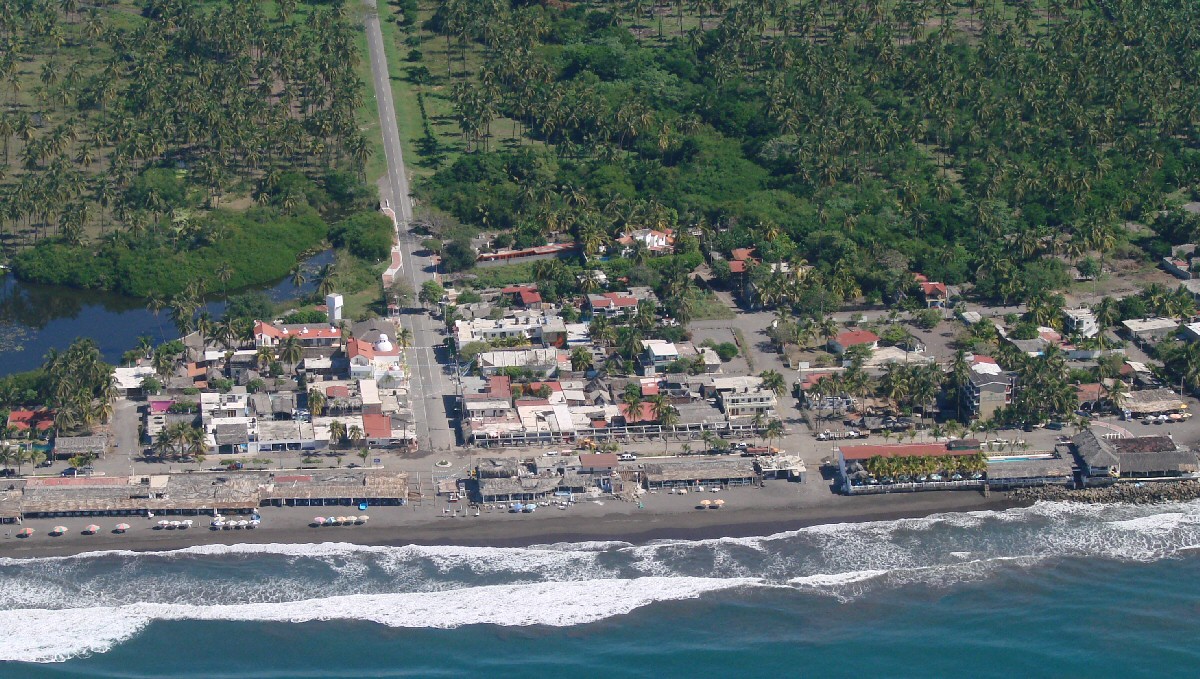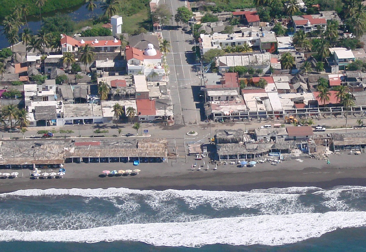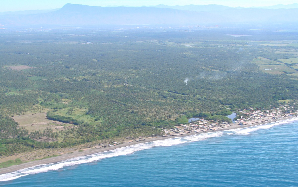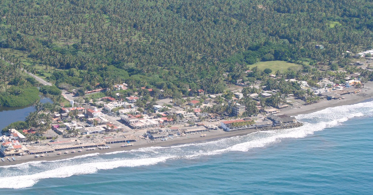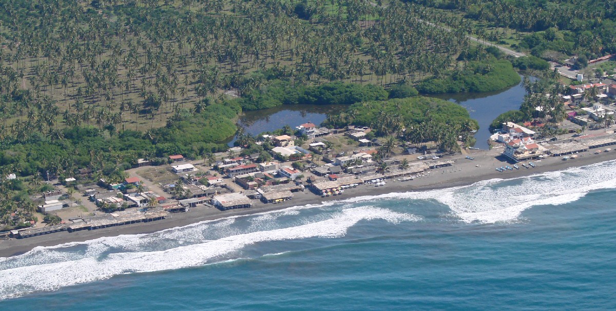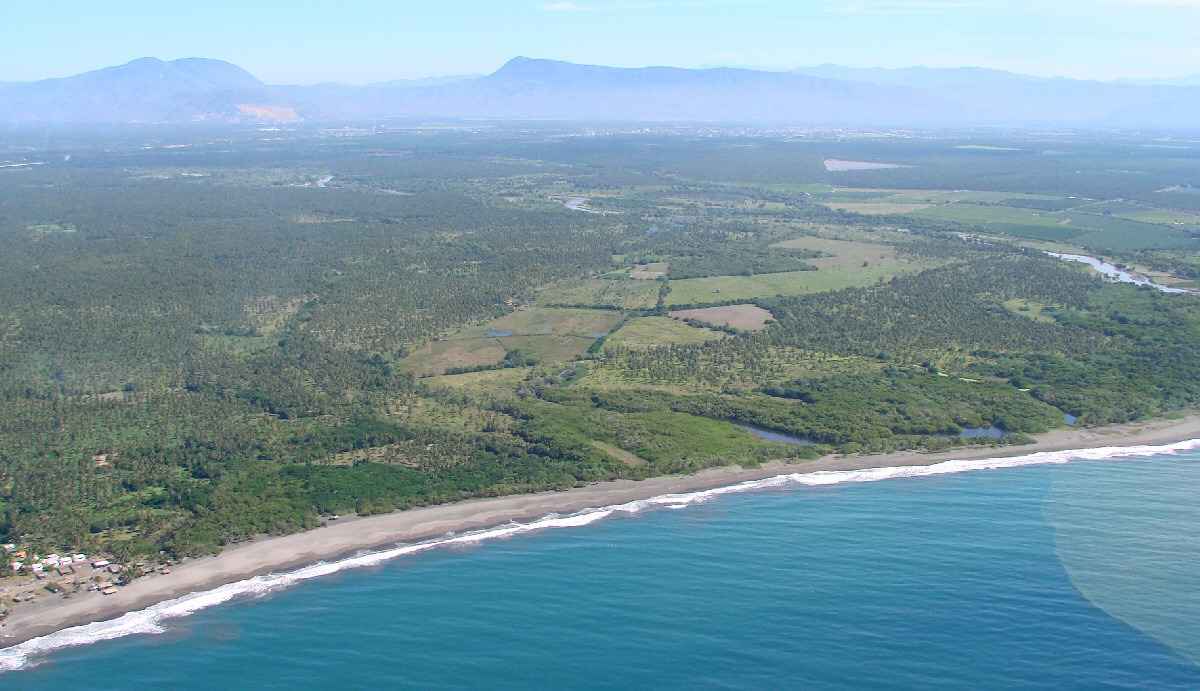 Estero Palo Verde lower center, El Paraío at left, Río Armería in background