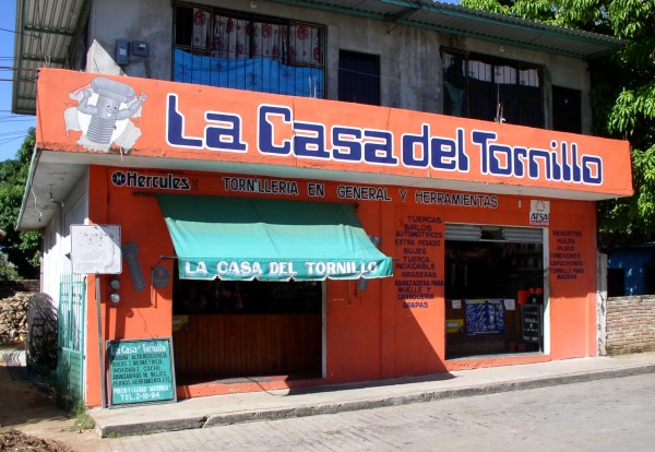 One of the things that I point to is little plastic plugs that you put in the hole that you have drilled in the cement wall to hang a picture or something so that I can put a screw in the cement. I seem to buy a lot of these little wonders. I don't know where they all go but I'll bet I have used over a hundred. You would think I could remember the name so that I could get them at other stores. I walk into Puerto Pronto and they start throwing them at me. Speaking of screws, just try to find the one you want.... Well there are two screw stores that I know of and I usually go to House of Screws (Casa de Tornillo). Its one of my favorite stores because they have all their screws and other things hanging on the wall so it is easy to point to what I want. You have to buy the very useful sheetrock screws by the screw as opposed to by the pound or kilo so you have to know how many screws you will need. If you screw up and don't get enough you have to make that second or third trip that I am so use to making. You can buy nails by the pound but not screws. The ferreterías have screws but not the selection the House of Screws has and they never seem to have the screws that I want.