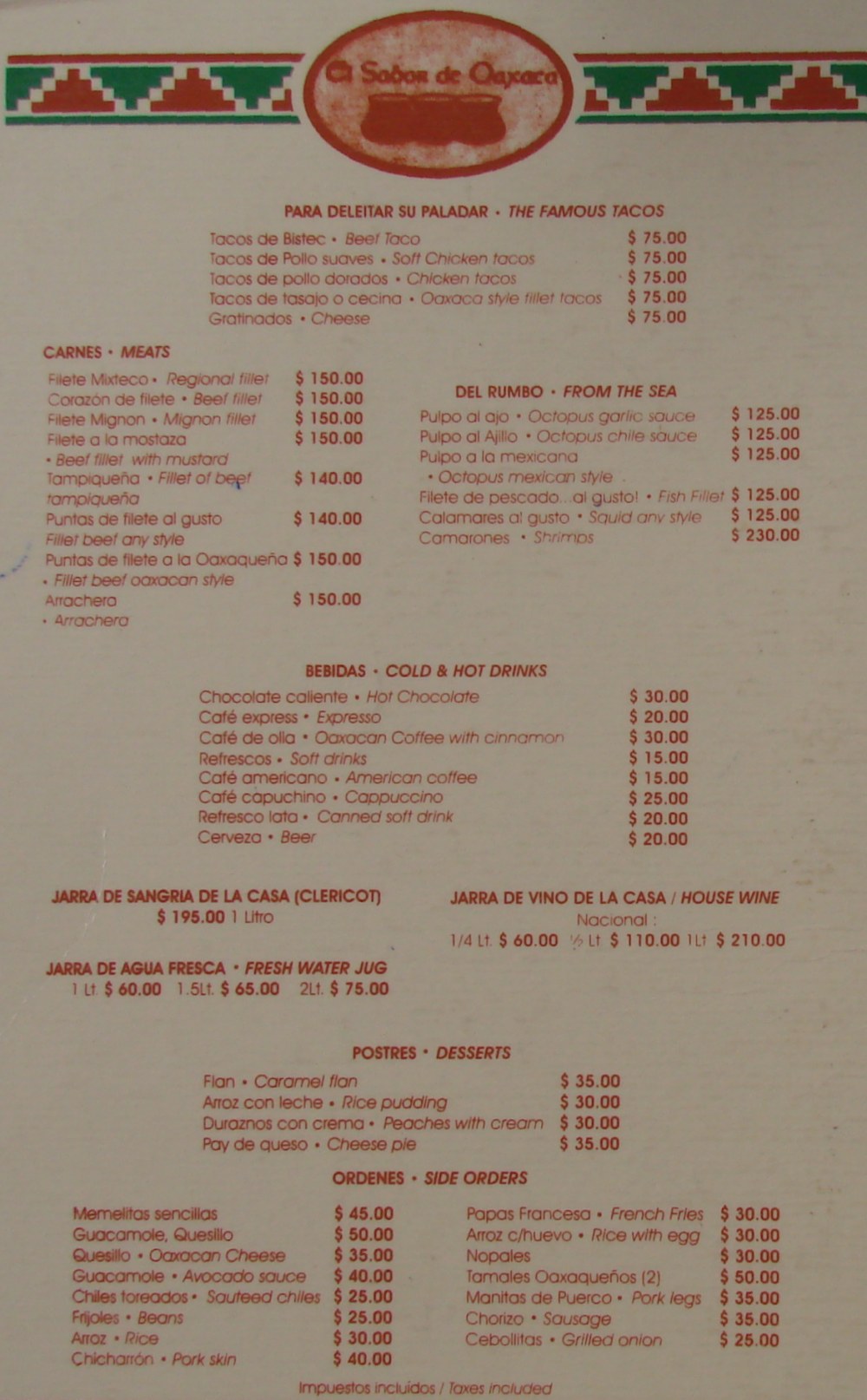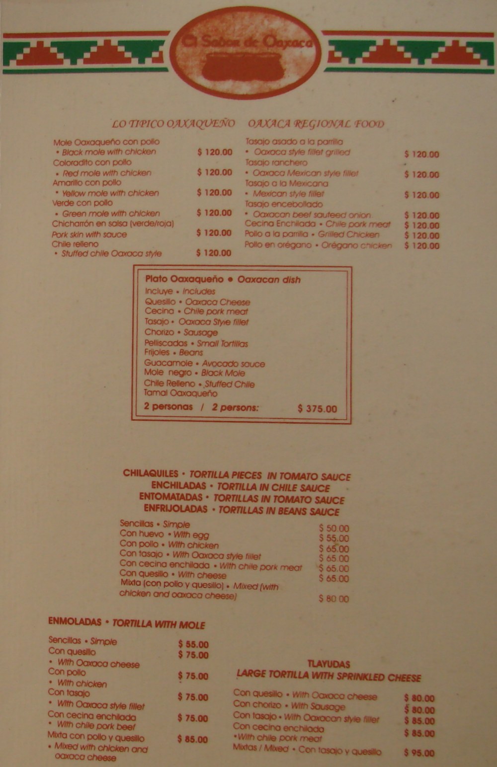 Sabor de Oaxaca is a popular restaurant featuring Oaxacan Cuisine. It is located 1/2-block east of the