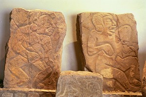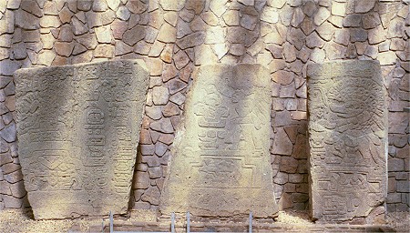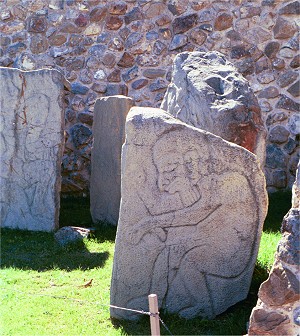 | Many of the carving on display on the grounds of Monte Albán are reproductions of the originals. |