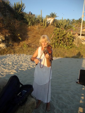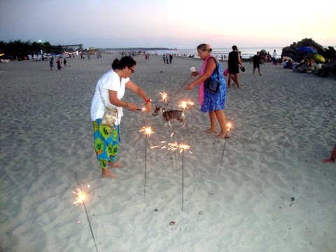 January 2018: For many years--perhaps as many as 20 years--folks gather at the same spot on Playa Zicatela to watch the final sunset of the year. A violinist plays, people light sparklers, many toast the view with beverages of all sort. Sky divers float to the sand farther down the beach and the two planes that drop them fly low over the group, their annual New Year's greeting. Hugs abound. When the sun disappears over the horizon, everyone shouts, "¡Feliz Año Nuevo! Happy New Year!" The group changes from year to year, though there's a core of old timers.