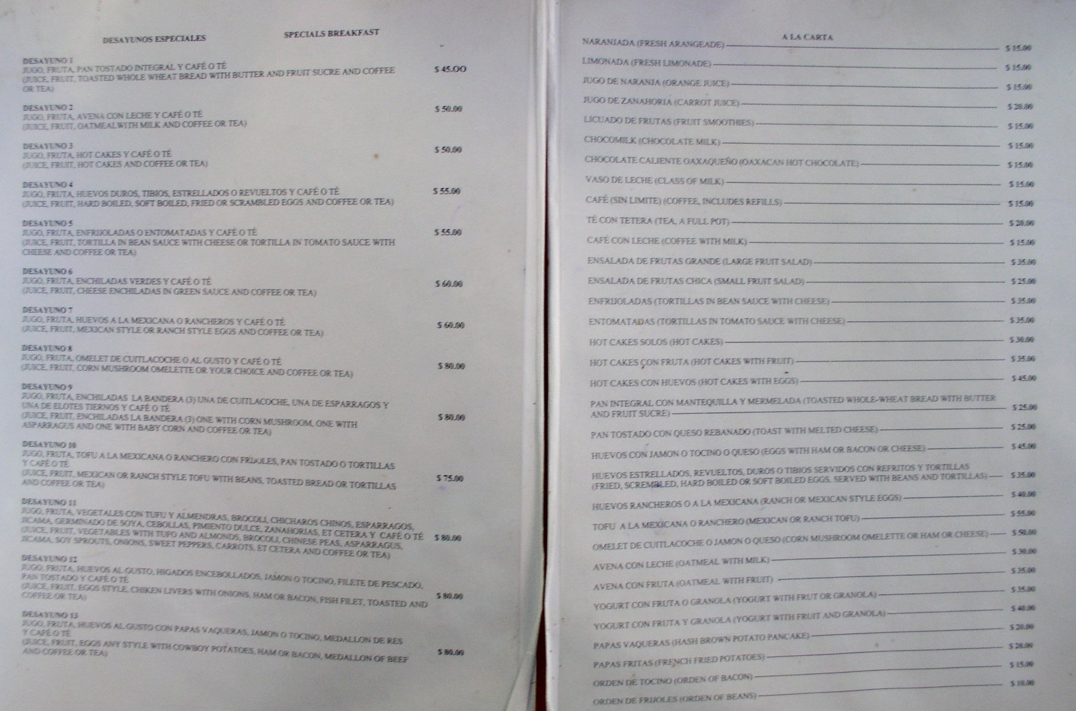 Restaurante Tabachin at the Hotel Tabachin was given the honor of best breakfast in the Best of Puerto Escondido review. Besides the usual offerings, the menu includes healthier items like tofu and stir-fry.