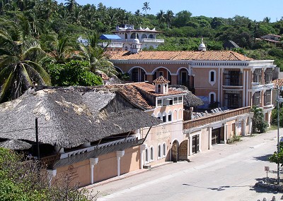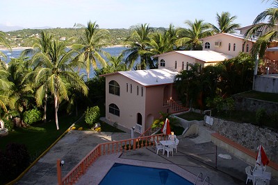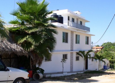 Sunday evening we had dinner at the Hotel Santa Fé. The Sante Fé is located on Playa Zicatela and is one of Puerto's finest hotels. The restaurant is the palapa structure structure at left and has a great view of Playa Zicatela with sunsets over the ocean. It has the distinction of being Puerto's most romantic restaurant. We had sopa de cilantro, guacamole, sopa azteca, papas fritas, and ceviche with pastel chocolate for dessert.