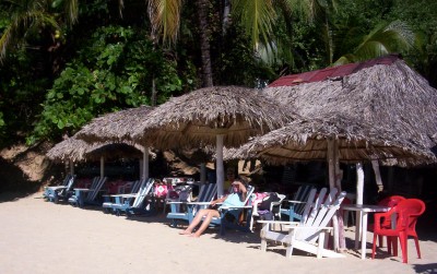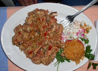 We spent most of the day at the twin beaches of Puerto Angelito and Playa Manzanillo. Once again, the ceviche served on the beach along with the cocos frios really hit the spot. We snorkeled in the rocky area between the two beaches and took some underwater photos. The snorkeling was good; I saw numerous reef fish including one large school of hundreds, and sea cucumbers and even a lobster.