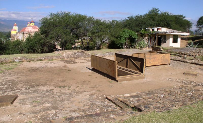The city of Zaachila is named for the Zapotec ruler, Zaachila Yoo, who ruled the region in the late 14th and early 15th centuries. Zaachila is one of the few Mixtec-Zapotec capitals that was still inhabited at the time of the Spanish Conquest. Zaachila was an important center during the time from 1200 to 1521 A.D. The archaeological site is located near the center of the present day city on a hilltop next to the Church of the Virgen de Juquila. The site is open every day from 8 am to 6 pm. There is an entrance fee.