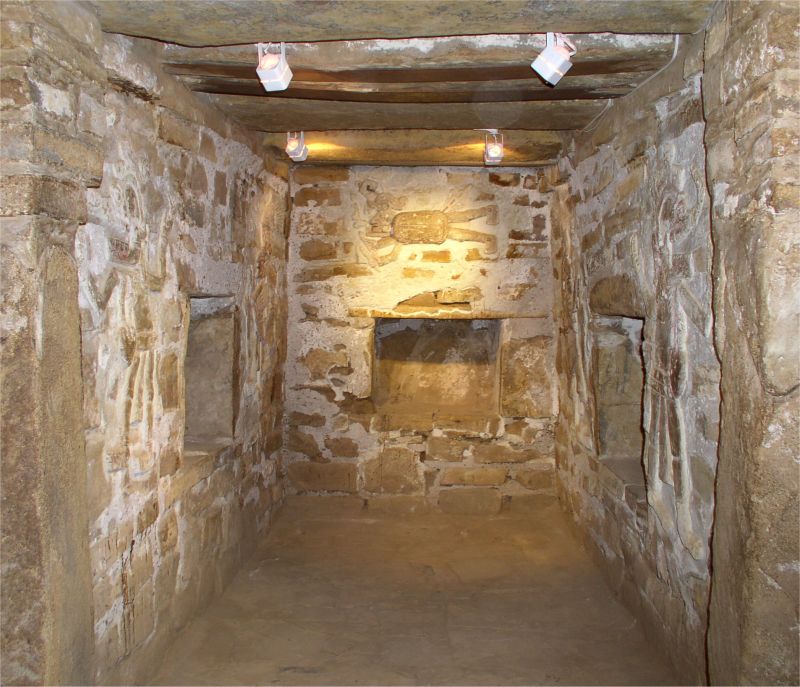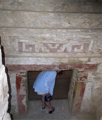 ![]() After entering the site, the caretaker opens the two tombs for the visitors' inspection. |
