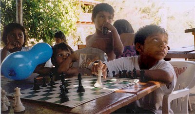![]() Children enjoy a game of chess in the library ramada. |