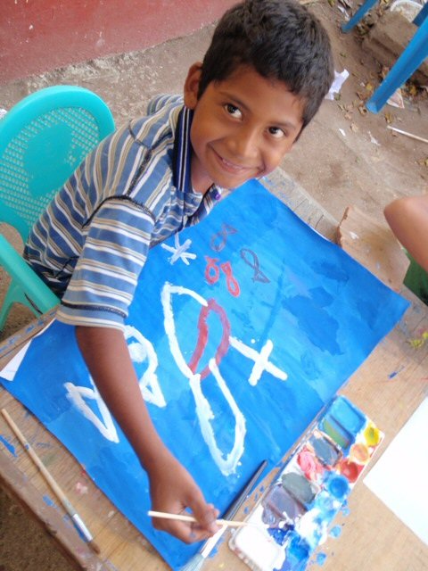 First, the news for which you are all waiting…..yes, we have yet ANOTHER WINNER in the 'EL NIÑO Y LA MAR' contest. For 2010, LUIS ELVIS FAJARDO, niño of Elsa and Chucho, won SECOND PLACE. His drawing, titled 'EL TSUNAMI MATA LAS BALLENAS,' was chosen for its originality and thought. Here is a photo of LUIS ELVIS as he creates his masterpiece (thanks to John Mistruzzi for the photo). And kudos to the adults who helped to supervise and clean up (what a mess there was!) the day the children painted the drawings for the contest…..Kate Kelley, Silvia and Marcelleno, Kelly and John among others.