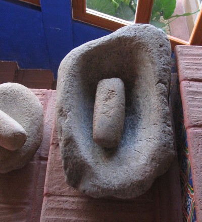 There are surprisingly only a handful of antique stores in the city. By contrast, in Puebla, 3 ½ hours up the toll-road, there is a downtown area known as Los Sapos where you can spend a day searching for antiques in several stores within a couple of blocks of one another, and on Saturdays and Sundays in an outdoor crafts and antique market. Whether in Oaxaca or Puebla, one must be cautious. I’m told that sale and exportation of artifacts is illegal. Therefore, when you ask for artifacts in a shop, either you’ll be turned away, or the dueño will tell you to wait, and he’ll go into a back room and return with a couple of pieces. You won’t find them on display. Similarly, if you venture off into the rural areas and make the same inquiry of a campesino, you’ll often be met with a frightened or puzzled look, and comment that it’s “prohibido.” However, you may also be told in the same breath that he has something at home, and to meet him later or come to his place to see what he has, the story being that he found it while working the land. There are two caveats. Firstly, if you are in possession of an artifact, while you can register it with the authorities and keep it at home (here in Oaxaca), upon your death your heirs are required to deliver it up to the government. Secondly, beware of reproductions. Near the ruins you may be approached by individuals purporting to offer originals for sale. An industry has been built around their production and sale, and the quality is high. In Oaxaca, with its significant level of poverty, there is incentive to go to great lengths to make and market “artifacts”. The temptation is hard to resist for the collector who would likely succeed in crossing into the U.S. with pieces, especially when the “story” of how the artifact was found makes sense, and based on the price being modest.