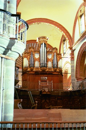 ![]() The organ, constructed 1711-1712 by Matías de Chávez, is located near the front entrance on a second-storey level facing forward. The organ was refurbished in 1997. |