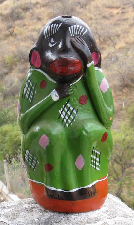 Eighty-year-old Don Valente Nieto, sole surviving progeny of Doņa Rosa and Don Juventino, states that anyone else in his hometown of San Bartolo Coyotepec who maintains that they or their deceased relatives were the creator of Chango Mezcalero, is mistaken or misstating fact. He believes that his father, a highly talented sculptor, was the innovator of not only Chango Mezcalero, but other fanciful clay vessels used for holding mezcal.