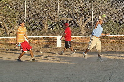 What is going on in Chila in May is the Mexican national Pelota Mixteca championships, the Federación Mexicana de la Pelota Mixteca. It's a huge event for Chila. Why is it in Chila? Because Chila is known throughout Mexico for their serious teams, their facility, and the people who organize their tournaments. In 1951, one the first years for national competition, a Chila team won the national championship.
