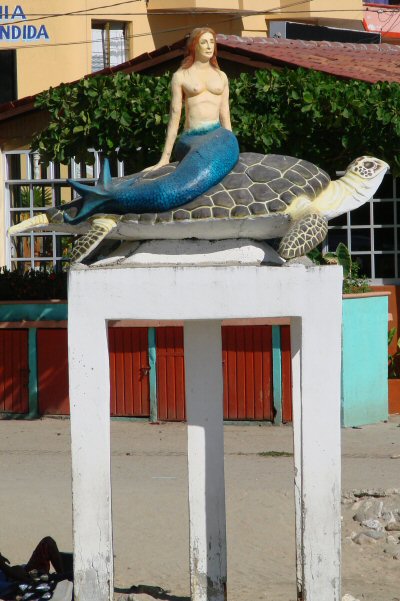 In 2004, the government of Oaxaca commissioned Aldo to create another stone sculpture for Puerto Escondido, one that would stand on the new pier that was under construction at the time. The pier was never completed, but the sculpture, “La Sirena Sobre Tortuga” (The Mermaid Seated on a Turtle) was set “provisionally” in the area in front of the proposed pier. The pier project was abandoned, but the mermaid keeps watch. Sadly, Mr. Ciardiello was never recognized for his work. An enduring concern for him was that the “temporary” cement base on which the mermaid sits detracts from the work.