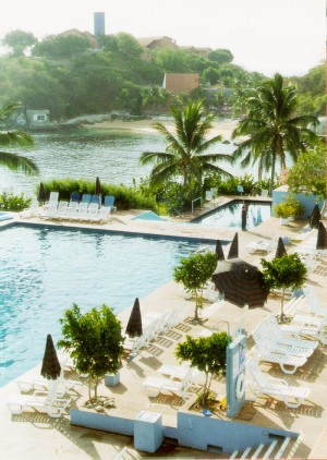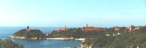 Las Brisas with Tangolunda Bay in the foreground. Photo taken from the Quinta Real.