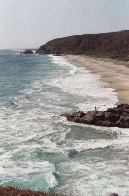Punta Cometa is a point of land jutting out into the Pacific near Mazunte, Oaxaca. It is located 4 miles west of Puerto Angel. Punta Cometa is the southernmost point in Oaxaca. Nearby, the Centro Mexicano de la Tortuga researches, breeds, and displays numerous varieties of live turtles and fish, besides photos and other exhibits. Efforts are being made to reestablish the once plentiful local turtle population that was depleted due to previous practices of hunting turtles for their meat and collecting their eggs for consumption. See aerial photos of Punta Cometa.