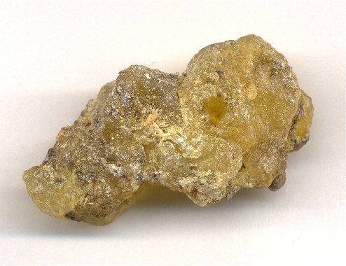 is the dried resin of the copal tree. The incense is somewhat smoky when burned and has sort of a pine scent. The incense has been widely used since prehispanic times. It is burned year round in Mexican churches and is especially popular in the homes during the Day of the Dead celebrations. The sample shown in the photo is a 1.5" long piece of the higher grade copal. We purchased it at the Benito Juárez Market in Oaxaca, Oaxaca. The lower grade, also available at the market, is black in color. | |