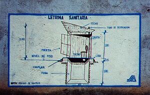 ![]() This poster, painted on a wall in a small town near Oaxaca, is basic preventative medicine for the masses in its simplest form. Much of the improvement in Mexican health can be traced to billboards such as this one. Preventative health care is an important part of the system of nationalized medicine available in Mexico. [Photo by Diana Ricci] |
