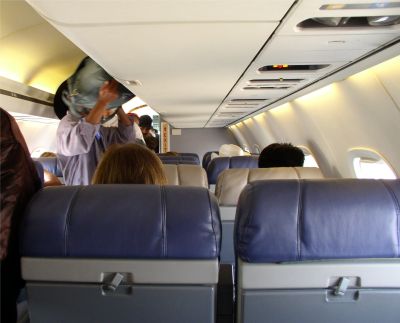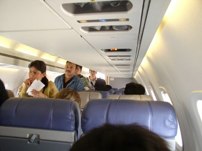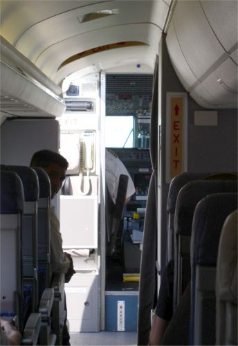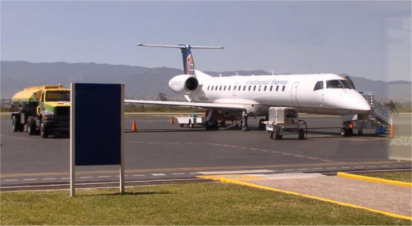 | Here are some photos of the Embraer 145 that Continental operated between Houston and Oaxaca. It is a small but fast jet. Noise levels and seating room were comparable with the larger jets. The seat bottoms are a bit hard though and I would consider taking along a thin foam cushion. |