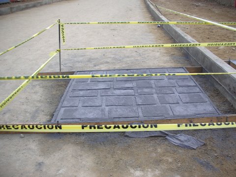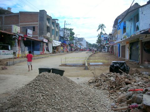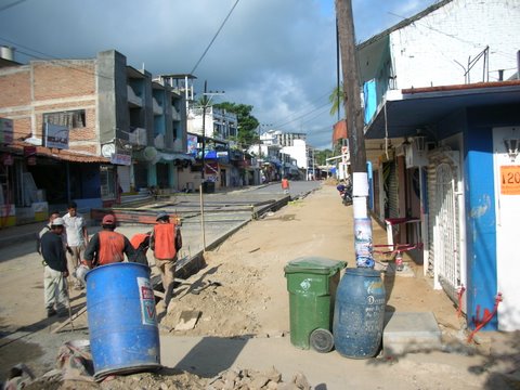"Is coming, Mexican time," says Gina, the Information Goddess. The Adoquín is getting new paving work done.