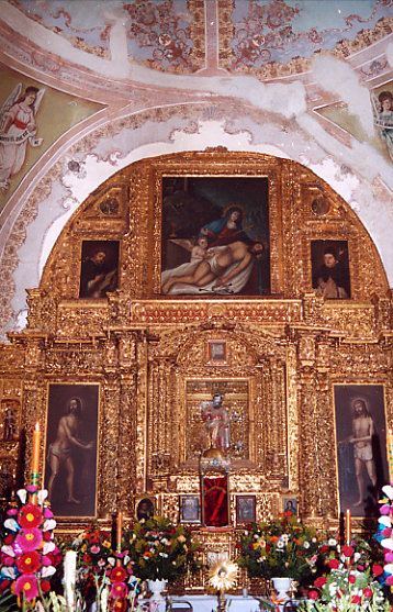 Described as "gilded lace"* the Huayapan main altarpiece is remarkable for its intricacy of its ornament, a testament to the skilled woodcarvers and other artisans who crafted this extraordinary work of baroque art. Early in the1990s the retablo was disassembled and fully restored to its former glory, and further work was done more recently by the regional chapter of Adopte una obra de arte.