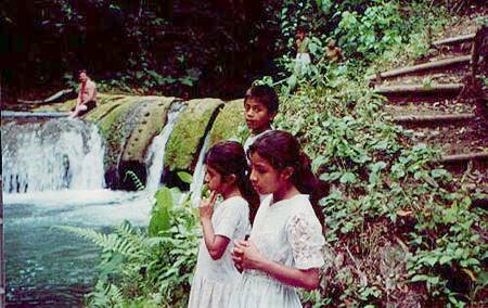 Visitors cool off by the waterfall at the Gustavo's Coffee Plantation. Photo submitted by Robert R. |