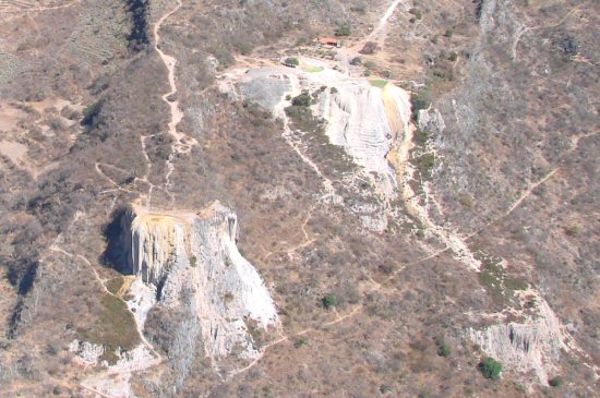 Virtually no tourist to Oaxaca, or resident for that matter, ever has a chance to view Hierve el Agua from an airplane. But those with any opportunity to get to the site the traditional means should not pass it up. Hierve el Agua is one of the premier wonders in all Oaxaca.
