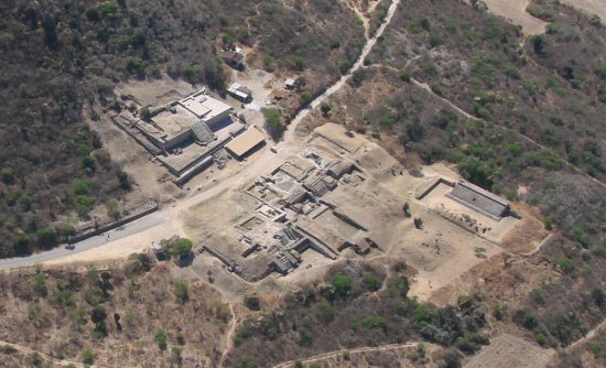 The GPS unit told us how many minutes until we reached Hierve el Agua. Tom had us on a course, but I knew from having driven to the site hundreds of times over the past 20 years, that we were a few degrees off. Tom was relying on his sophisticated navigational equipment, while I was simply looking down at the highway and dirt roads leading to Hierve el Agua; familiar landmarks including ruins, towns, particular restaurants and mezcal - producing facilities; and mountain peaks I had frequently criss-crossed in my pick - up or the van. There it was, Hierve el Agua in clear view as we flew over the final mountain top; the poolings of water, the falls, and the newly constructed yet abandoned modern brick buildings and large, concrete swimming pool (one of the white elephant's of the last governor's administration). Of course we could not see the water bubbling up from the ground, nor any tourists milling about, but all the rest was easily visible, even more so as we descended and circled twice.