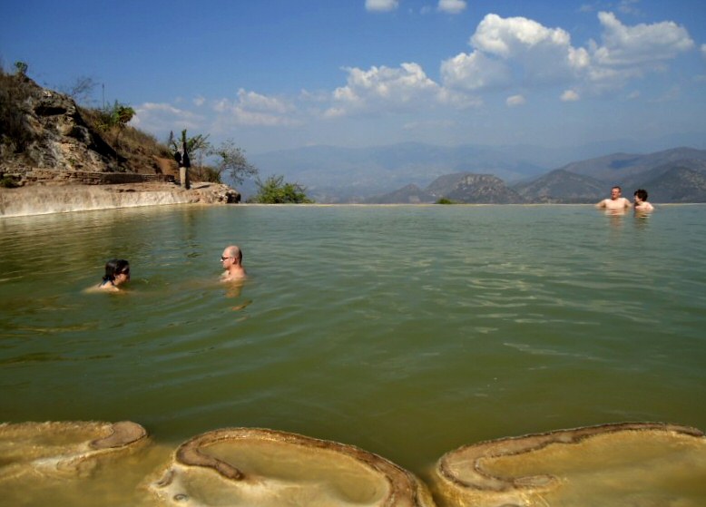 In 2008, government completed construction of a large, impressive, traditional swimming pool, as well as dining facilities just above the actual Hierve el Agua site. There are about a dozen small, modern restaurants alongside a shady, palm leaf palapa; there's an equal number of row-house hotel suites close by, constructed years earlier. It is not known when any of it will be operational.