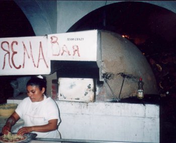 pizza that matches up. Due to the difficulty of getting good Italian-style cheeses, pizza in Mexico has always been an automatic disappointment. In fact, up to this trip I'd had but a single good pizza in more than thirty years of Mexico travel. That came from a man from Detroit who briefly had a restaurant in Barra de Navidad before he borrowed a bunch of money from people in the expat community, stole one of their cars, and then disappeared! But all that has changed. Bar La Crema has such a good pizza Edie and I kept going back for more! Lalo uses a heavy cream instead of the usual bad cheese - it sounds wierd, but ya gotta try it! He will tell you that the real secret is a wood-fired brick-and-adobe beehive oven he's brought in. Whatever the happy set of circumstances, it works! Try the Special "La Crema" and see if you don't agree!