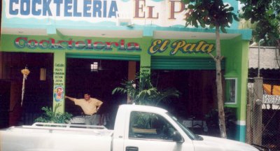 The best meal I had during our too-brief stay came from a place called Marisqueria El Pata. If you take a right coming out of the old Oasis, take another right at the next corner, go one block, and look accross the street you should find it. Edie and I split the Pina Relleno de Mariscos. Half a pineapple was hollowed out and filled with a delectible mixture of fresh seafood and smothered in cheese. Damned good eats! Edie also had their Guacamole salad and liked it. Rick and Brook joined us for dinner that night and had good filets of fish. The jarrita de limonada was a good thirst quencher as well.