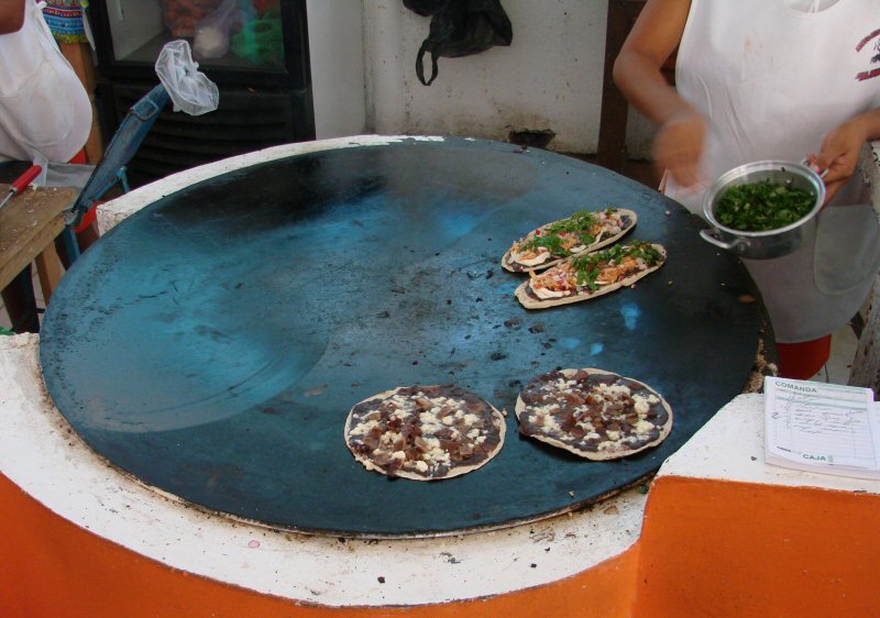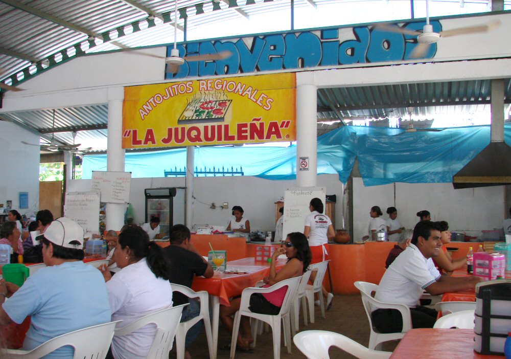 There are two restaurants in Puerto Escondido bearing the name Juquileña. This one, the one everyone likes, is located at the corner of 10a Norte and 4a Poniente. That's two blocks away from the coffee store, La Casita. It is a large, busy restaurant with long tables and a mostly Mexican clientel. Regional Mexican food, large selection, highly recommended. As many as a dozen waiters and waitresses comb the large dining area taking orders and delivering a wide variety of fresh regional dishes. Featured dishes are listed on a bulletin board on the back wall. The cooking is done behind a long counter along the back wall in full view of the patrons. Meats are butchered in a courtyard behind the kitchen area--not in view. The is the place to go for fast, economical, delicious Mexican fare.