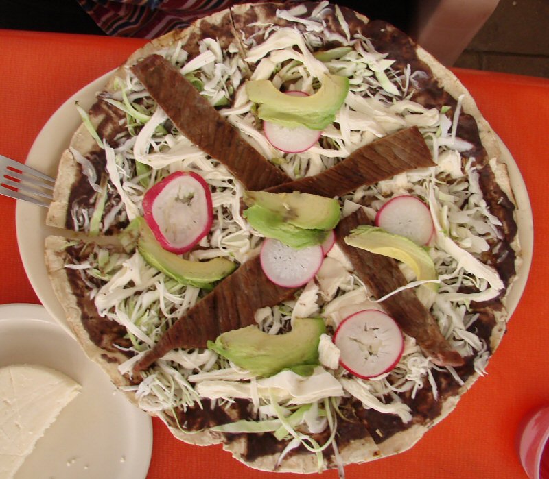 And now the food... This is a Oaxacan tlayuda, sort of a Mexican version of a pizza.
