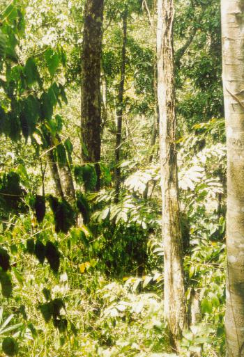 ![]() Coffee trees require the shade of taller trees. At this time (March), the coffee has already been harvested. |