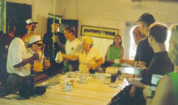 Maria Scherremberg offers coffee, juice, and mescal to her guests after dinner. |